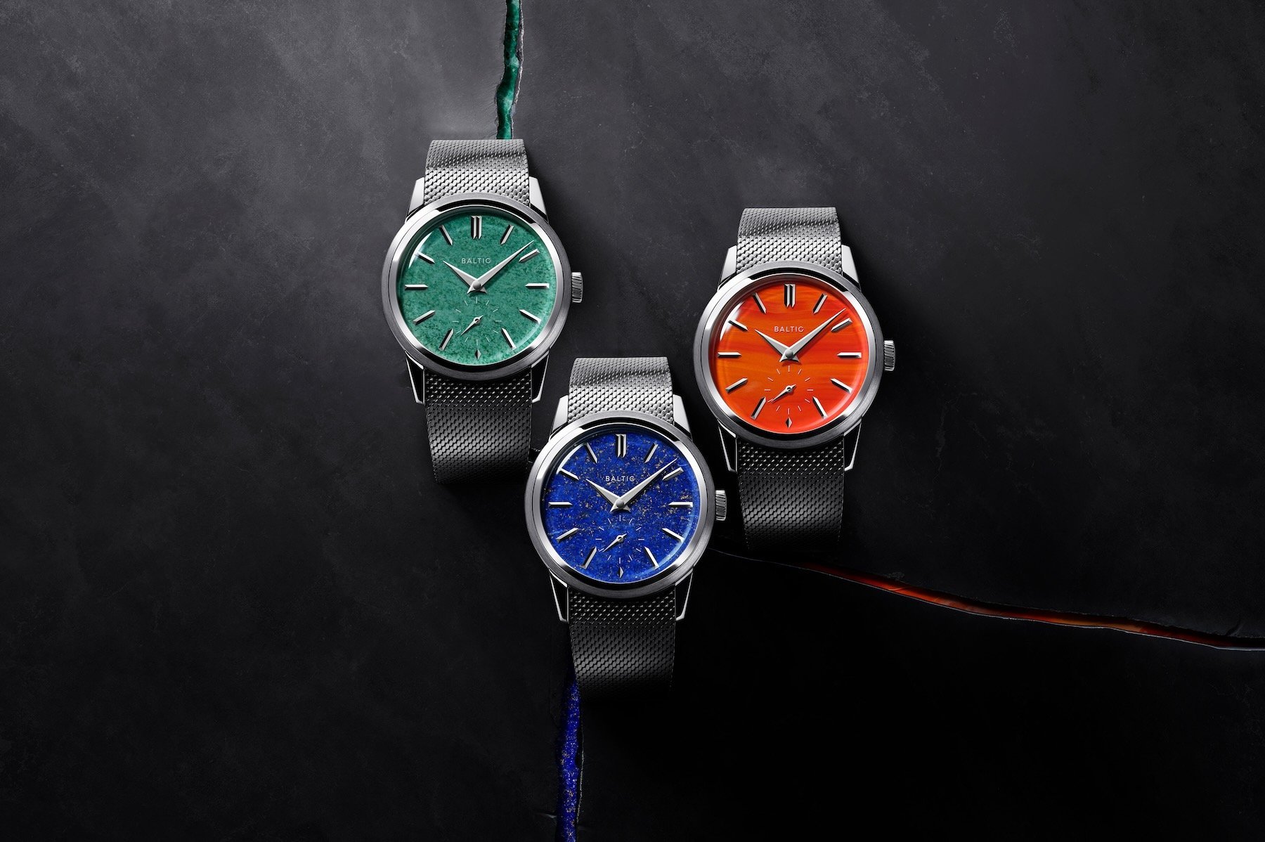 A sporty look combined with a stone dial is not exclusive to Rolex, though. The Baltic Prismic limited editions with stone dials have clean, angular lines. Also, the steel and titanium case construction is anything but classic and traditional. Last year, the Parisian brand made three watches, each with a colorful stone dial inspired by Paris, London, and New York City, cities where Baltic has a brand boutique.