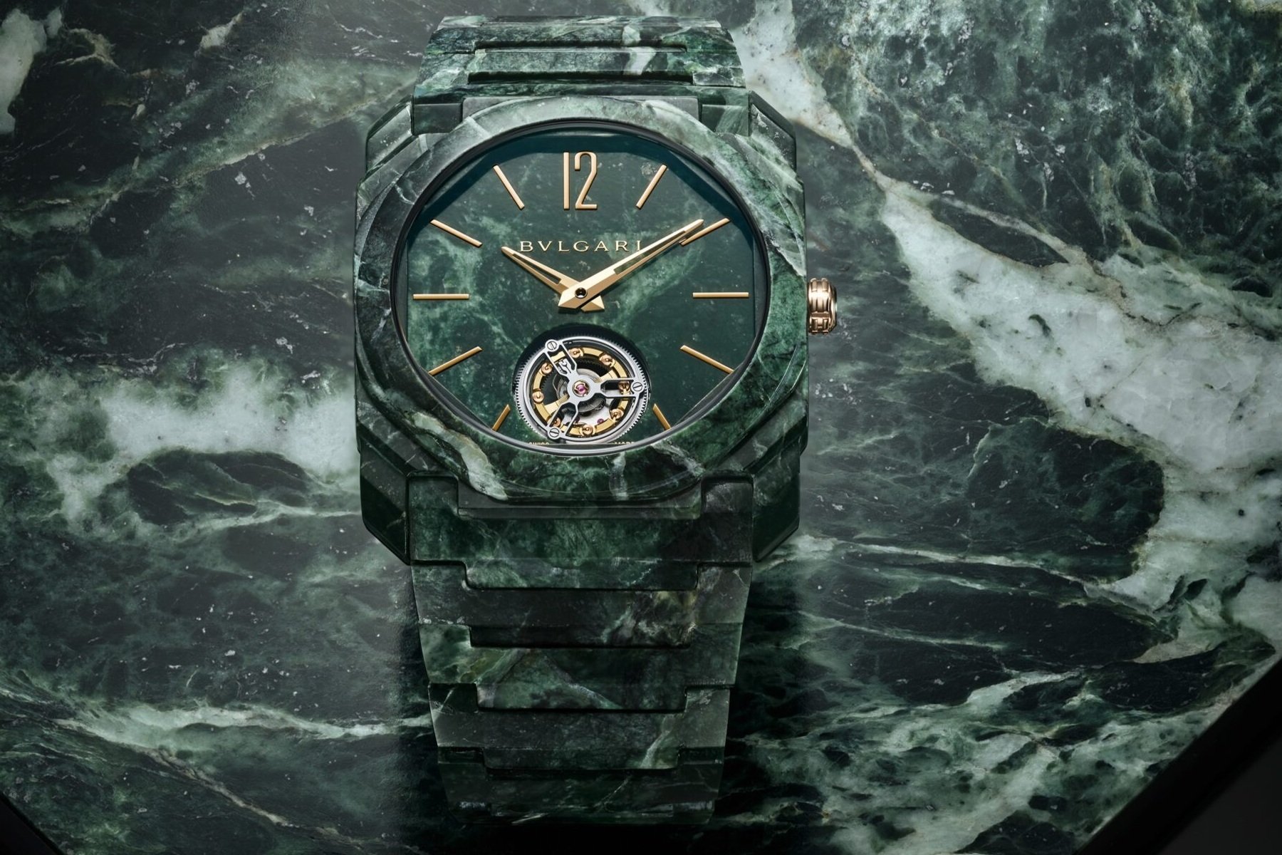 Marble is robust in its natural state, but it becomes exceptionally fragile when cut into thin layers. That didn’t stop the people at Bvlgari from creating a dial only 0.8mm thick. They only did it 30 times, though. Oh, there was also an Octo Finissimo with a marble dial as well as a marble-covered titanium case and bracelet. It was a one-off for the Only Watch auction in 2023. It’s impressive, yes, but also a bit too “rocky” for me. The marble-dial watch feels lavish, like a salon in a Roman palazzo. The full-marble treatment, on the other hand, is like a bathroom in a 1970s five-star hotel.