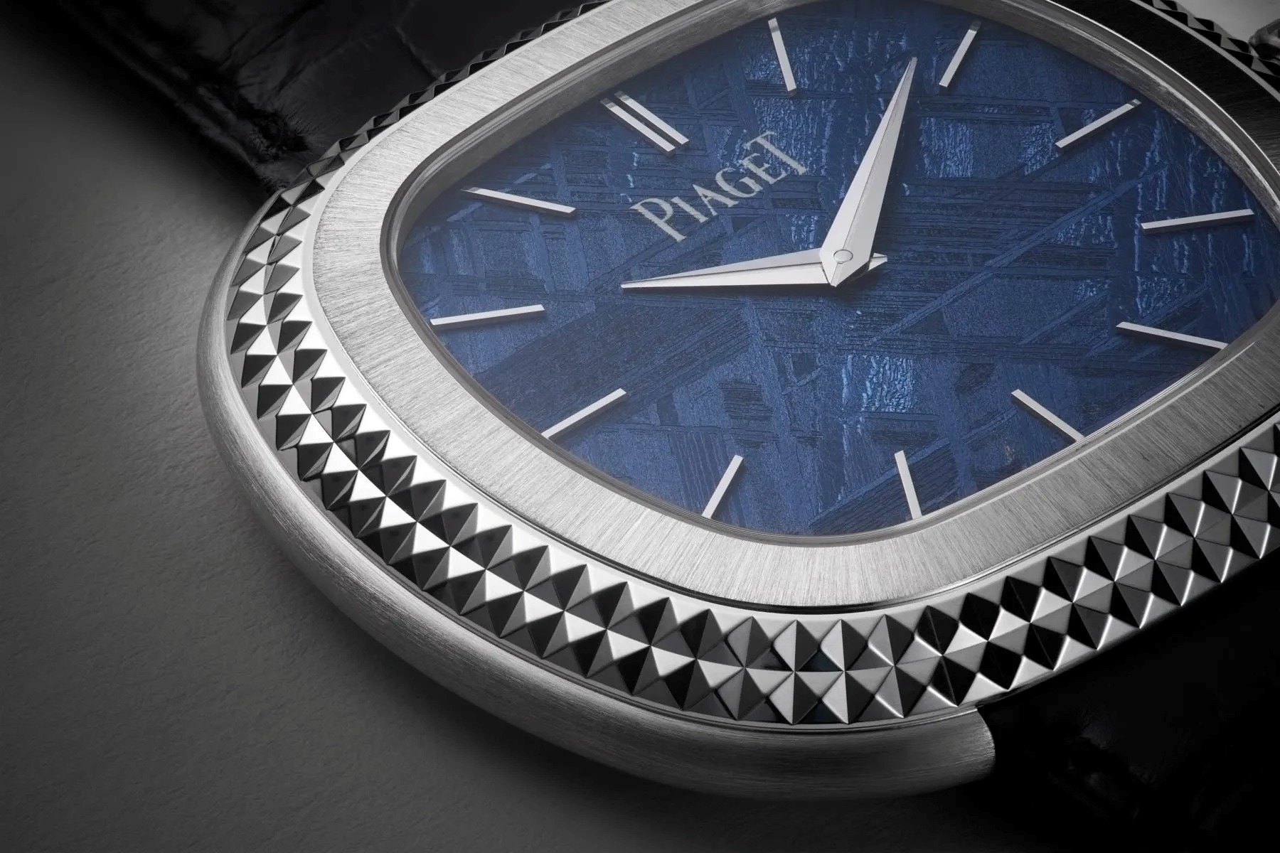 The model looks best with a stone dial. For instance, in 2017, there was a yellow gold version with a brown pietersite dial, and last year, a rose gold version with a green malachite dial debuted. This year, thanks to an official new collaboration under license with The Andy Warhol Foundation for the Visual Arts, the timepiece was formally renamed the Andy Warhol watch. The white gold model with a blue meteorite dial and stepped hobnail-pattern bezel (€67,000) celebrates that fact and steals the show. But if this watch isn’t to your liking, Piaget has a solution. The brand now has an Infinitely Personal service that lets you tailor an Andy Warhol timepiece to your style. You can choose from white or rose gold cases, ten types of stone dials, dauphine or slender pencil hands, and an array of leather straps.