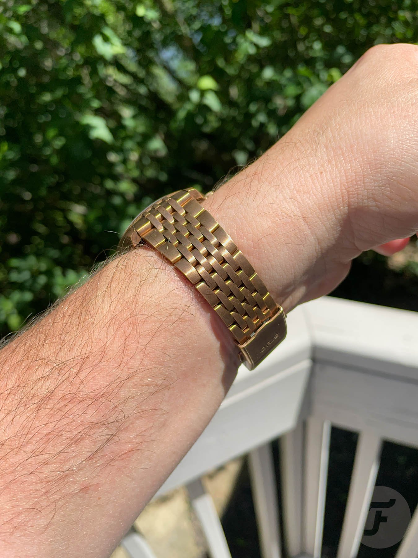 I think what excites me most about acquiring the bronze bracelet is the array of options I now have for the Fratello Oris. I would not have thought that a bronze watch with an oxblood dial would have such versatility, but it really does! In my time owning the watch, I have worn it on the leather and nylon straps, an anthracite Tropic strap (a quick buckle change made this option one of my favorites last summer), and now the bronze bracelet. The watch, despite its classic/dressy aesthetic, has looked great on all of these. The bracelet is quickly becoming my favorite, which is not a surprise to me at all.