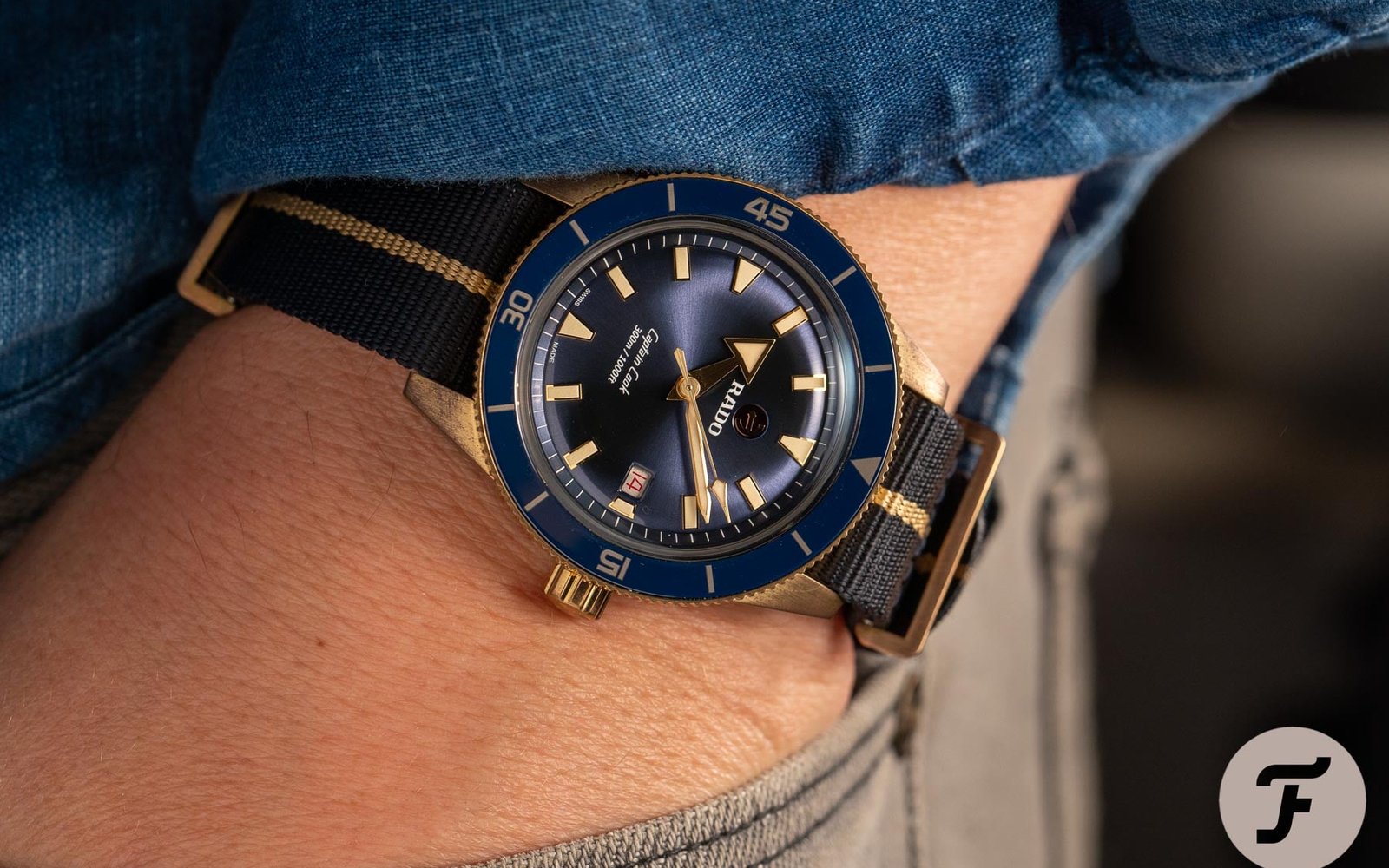 Messing with patinas is more interesting than it is fun. Sometimes, it can be downright stressful. Occasionally, it could be devastating (as my own experience turned out to be). Instead, wear it, enjoy it, and heck, even dive with it! The presence of a nicely-lumed ceramic bezel insert (the bezel numbers glow blue while the dial markers glow green) makes that even more enjoyable! That’s what it was designed for and it’s never looked more at home beneath the waves as it does in its modern CuAl skin. Caps off to the Captain — a timely and contemporary update for a watch that was certainly ready for it. Learn more about Rado here.