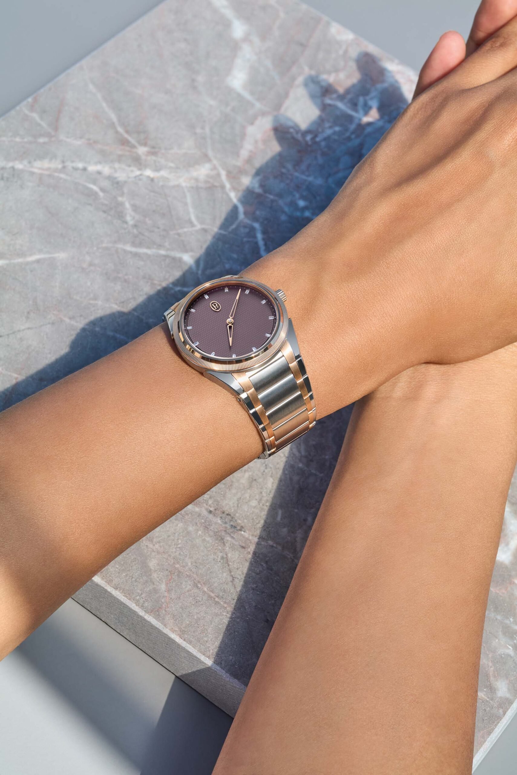 However, as much as I like the Laureato Fifty, I can’t ignore the Tonda PF Automatic 36mm. In its latest guise, the watch is adorned with a diamond-set Deep Ruby dial, and the stainless steel case is joined by 18K rose gold flourishes. These include the small bracelet links, fluted bezel, crown, hands, and applied logo. Parmigiani Fleurier only included pictures of women wearing the watch, which I think is limiting.