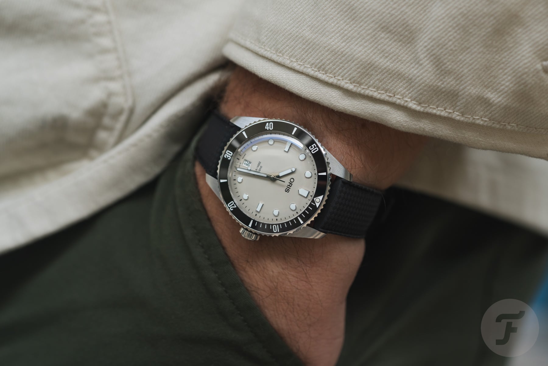 The bezel was also redesigned to offer more grip thanks to more pronounced teeth, and the bezel insert is now ceramic instead of aluminum. To start, Oris has released three dial variations inspired by colors from the 1960s. The first is a glossy black dial, the second is a matte grayish-blue dial, and the last is a beautiful light cream dial. The last two increase the retro feel significantly and have an almost powdery look to them that I thoroughly enjoy.