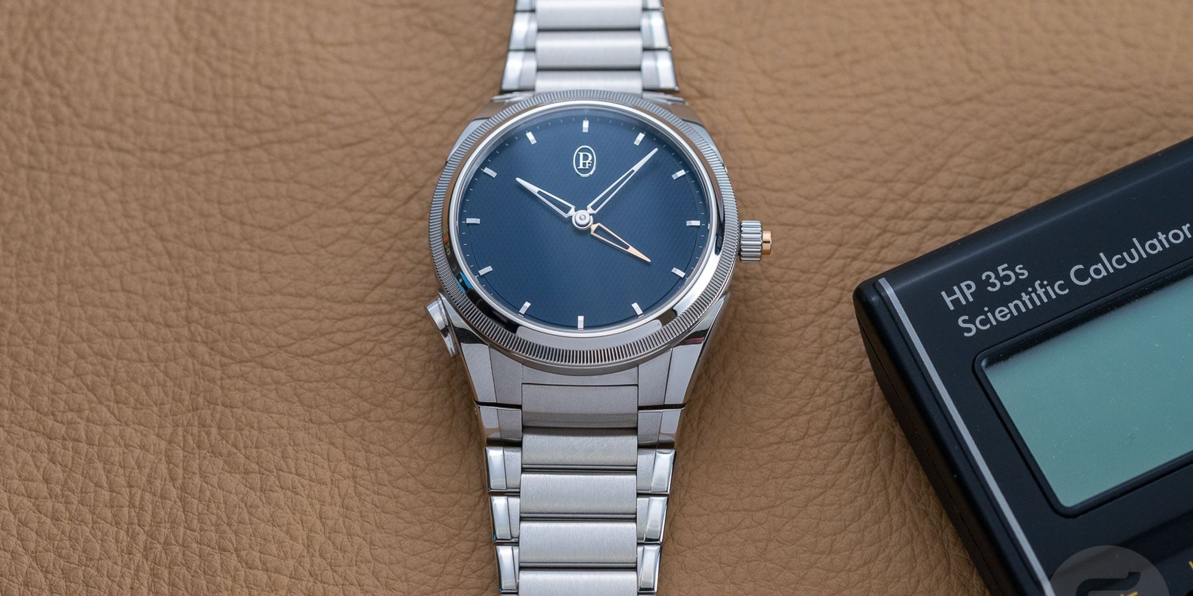Why would you want to? The Tonda PF GMT Rattrapante is drop-dead gorgeous. The sumptuous curves contour to the wrist, and the sparse dial allows the design language to be heard loud and clear. At first, the barren wasteland of the Tonda PF Micro-Rotor’s dial in 2021 didn’t land with me. Over time, though, the message conveyed by the simplicity has come through with a sense of quiet luxury. This is not a term or concept that Parmigiani touts, but I can’t help but feel that it allows greater private appreciation. The brand’s name is not spelled out or emblazoned across the top half of the dial. Instead, only the PF logo designed by Michel Parmigiani occupies the space and is a nod to hallmark stamps. The subtle quilting in the Grain d’Orge guilloché dial is almost imperceptible in Milano blue, but it can be adored up close.