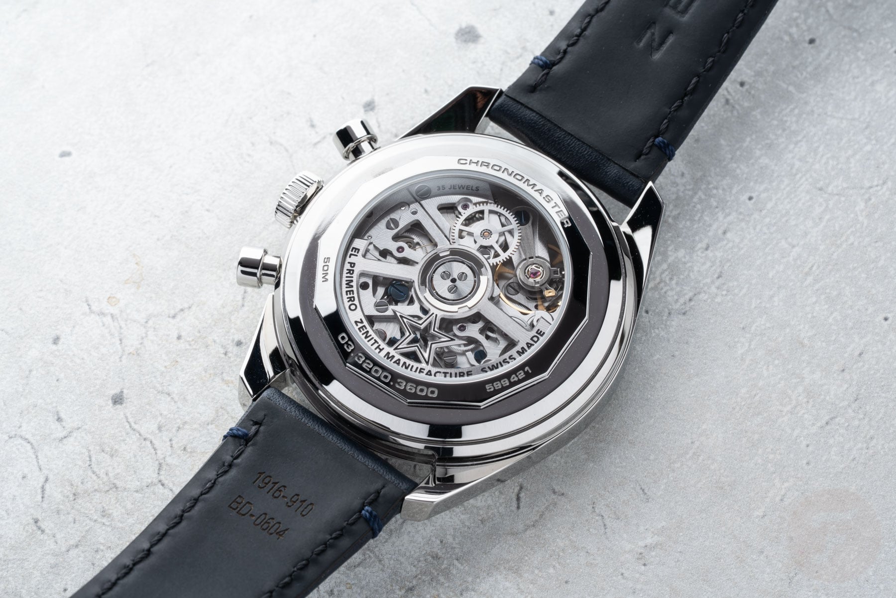Inside the case, you will find the El Primero 3600 caliber. This is a modern version of the classic El Primero movement from 1969, which is an icon in watchmaking. The 3600 movement, like its predecessors, operates at 36,000 vibrations per hour, but it offers an upgraded 60-hour power reserve. Just like the Speedmaster’s caliber 3861, the El Primero 3600 is a descendant of a legendary chronograph movement.