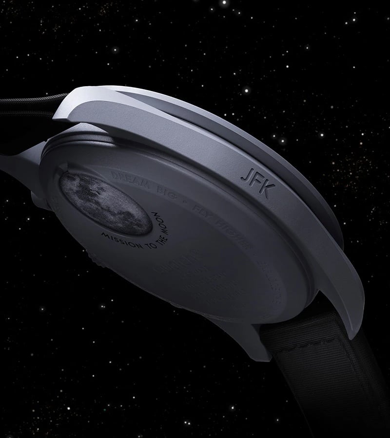 The auction for the 11 MoonSwatch Moonshine Gold cases, which my colleague Thomas reported about here, is currently taking place and will end on February 24th. The proceeds of this auction will go to the Orbis Flying Eye Hospital, which is also the reason why Omega is taking care of this bit of the collaboration rather than Swatch. Each box contains 11 MoonSwatch Moonshine Gold models, all “engraved” in the case band with the airport code of the boutiques where these boxes were on display.