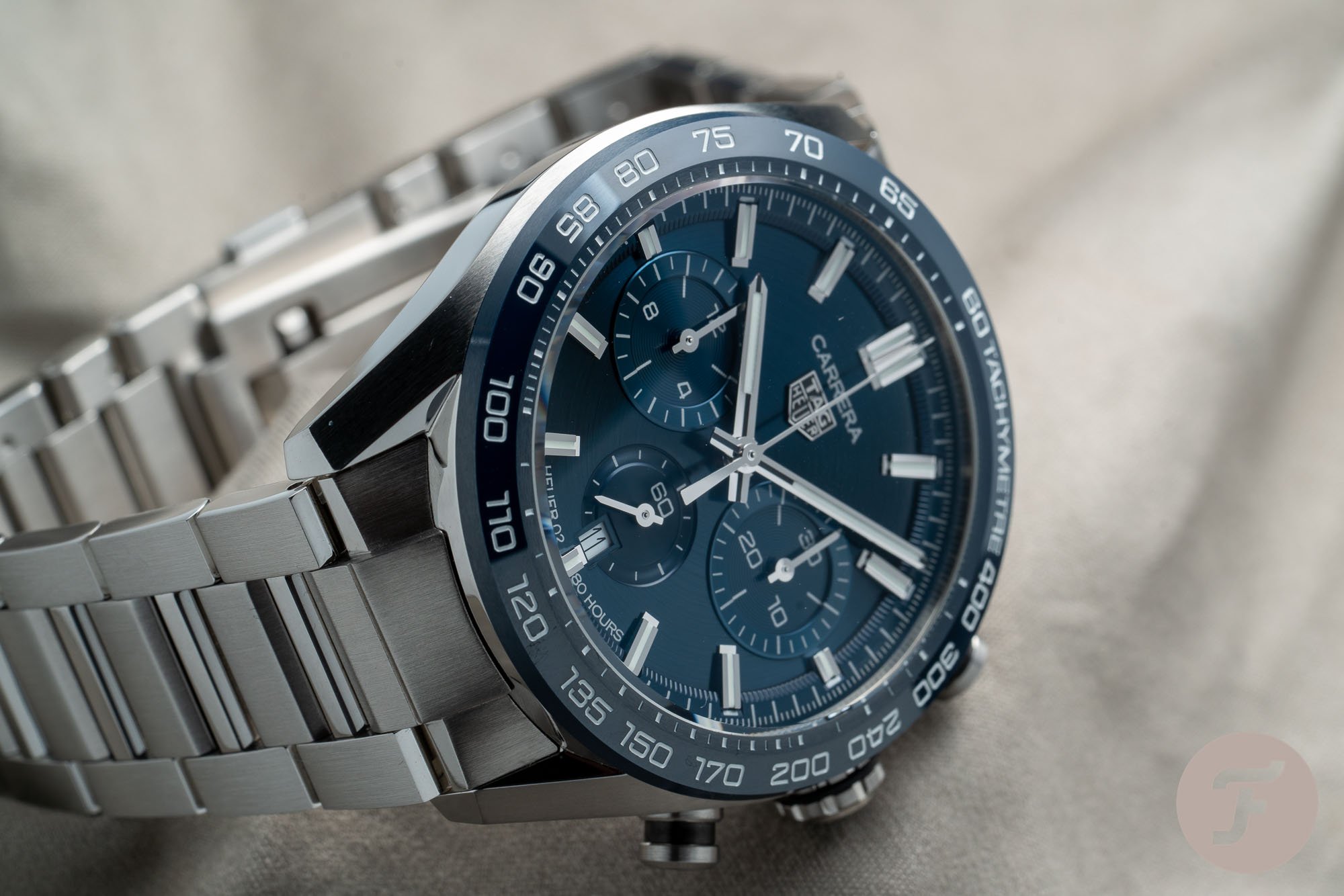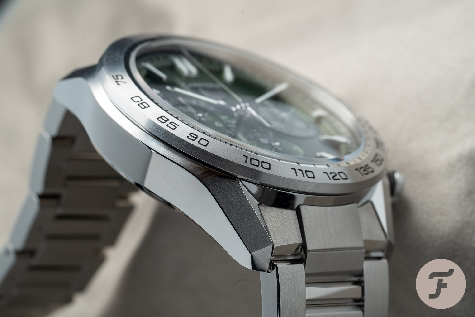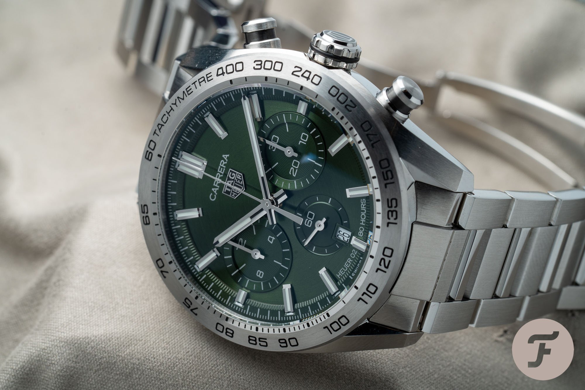 The bezel on all models but the green-dialed variant is made of ceramic. This instantly vaults this release into modern territory. While it isn’t to my liking (hence the green model winning my favor), it keeps the Carrera on a level footing with rival big-boy chronographs such as the Omega Speedmaster and the Rolex Daytona.