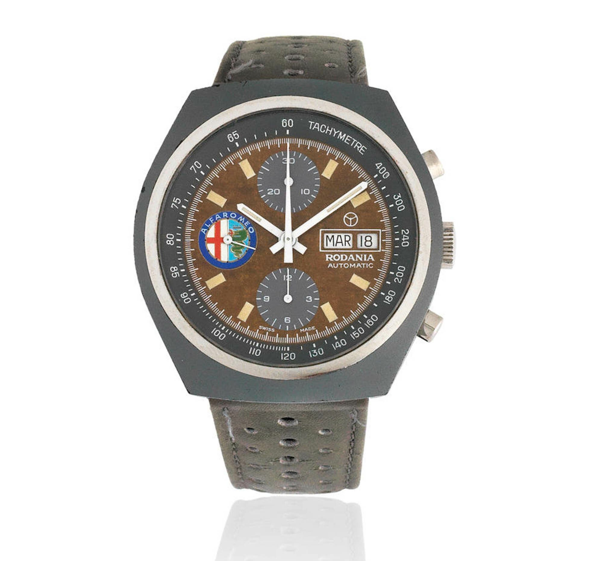 From what I learned, there should be about fifteen examples of these special-dial Carrera watches that were given out to top Volvo executives in the early ’70s. If you find them a bit boring, there is another chronograph for you to consider. While Volvo Heuers belong on the “unobtainium” end of the watch spectrum, the 1980s Rodania for Alfa Romeo is quite easy to come by. It is a “youngtimer” with an automatic Valjoux 7750 movement, and it resurfaces regularly.