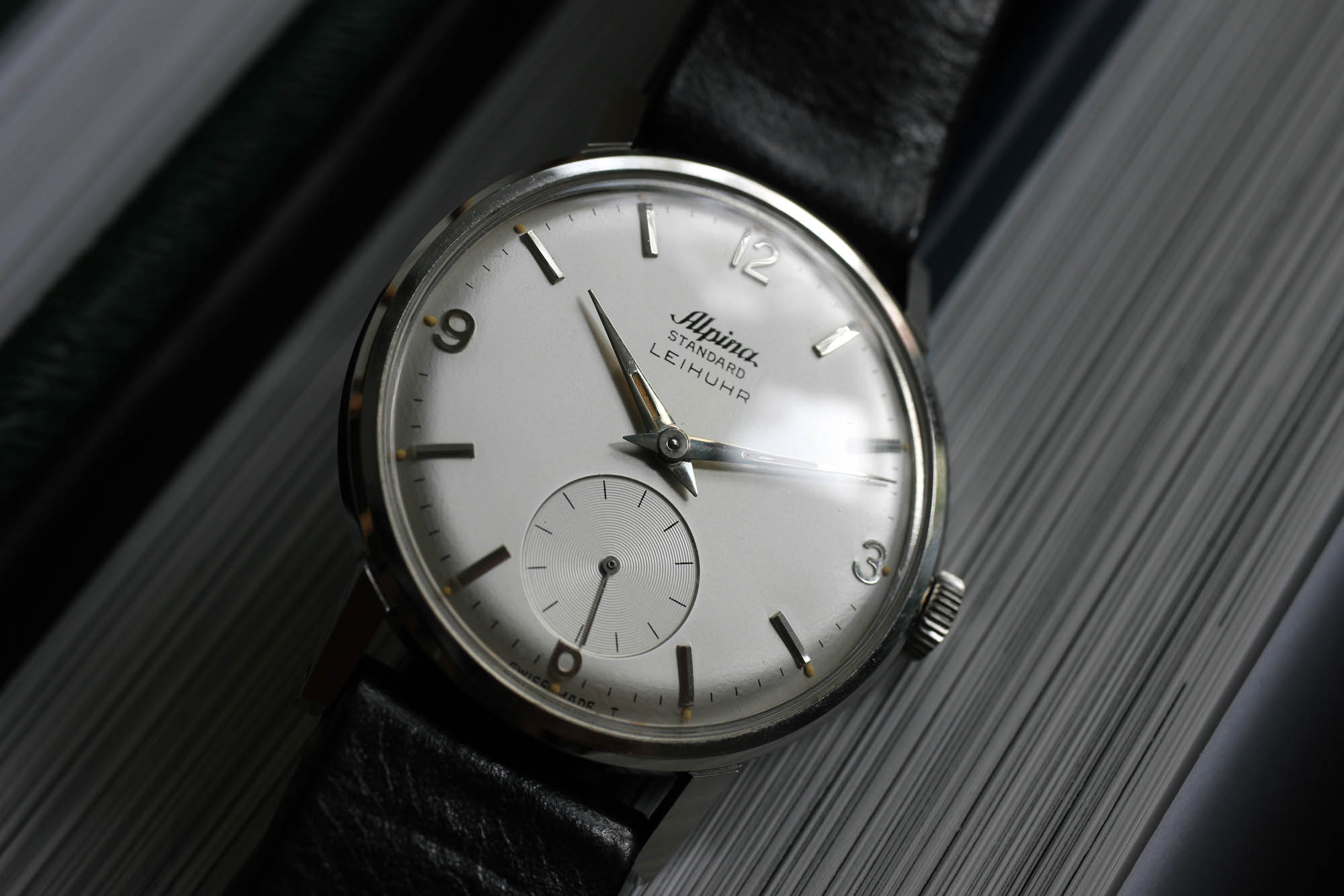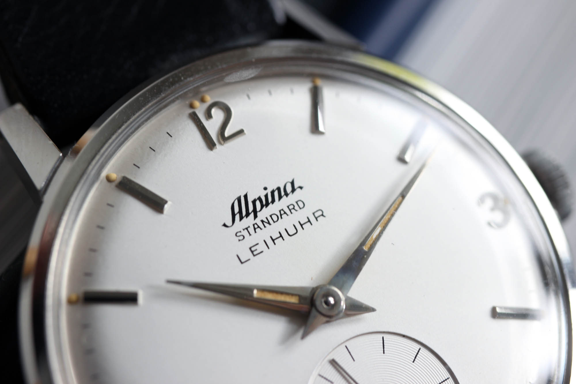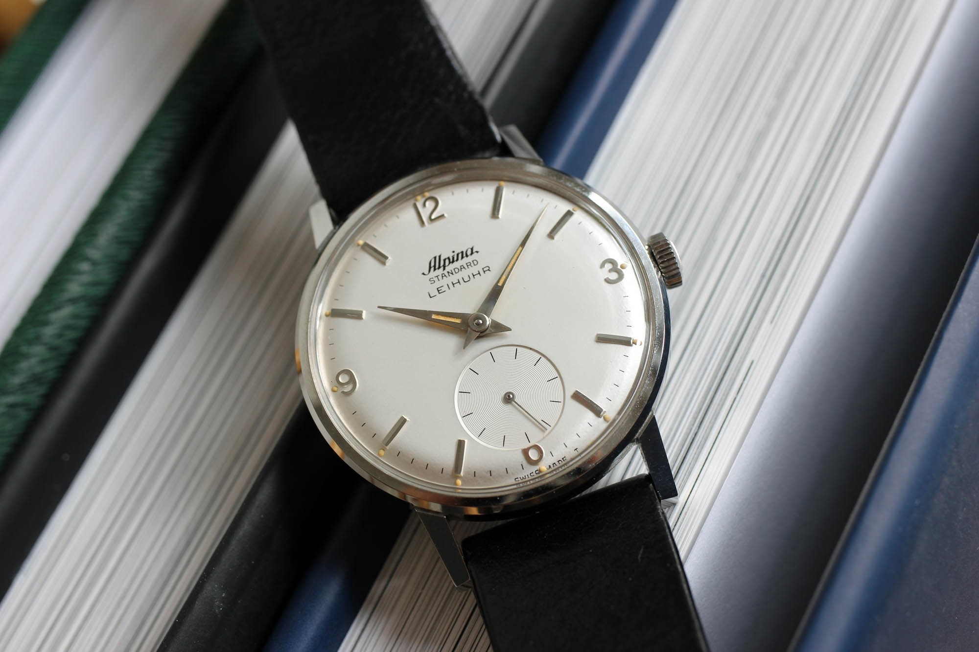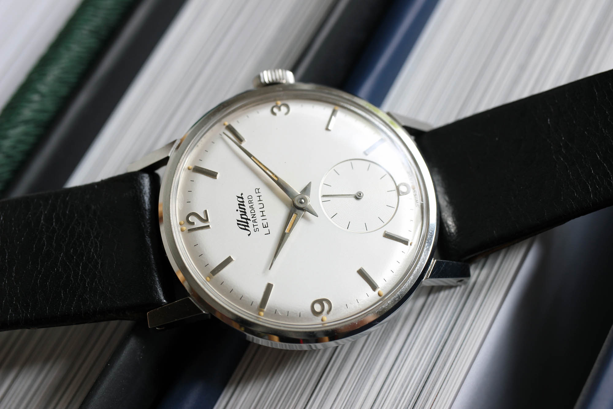 Ironically enough, I was in London for a conference on customer experience when I saw an Instagram post from the guys at Analog/Shift with a NOS Alpina watch with a ‚LEIHUHR‘ inscription on the dial. As I have a sweet spot for Alpina in general, I reached out to the guys and sealed the deal. If you find me another officially dial branded vintage service watch and I will send you a bottle of a wine. Show me another Alpina Standard Leihuhr and I will send you two! Thanks to my web crawlers and search robots on all the existing and non-existing watch sites, I have seen hundreds of Alpina Standard models. But none of them came with such a precious dial modification.