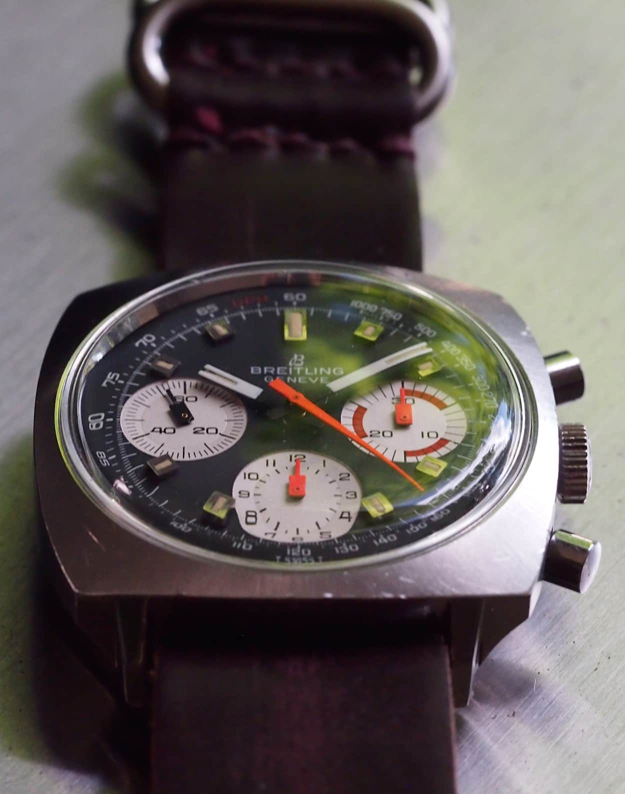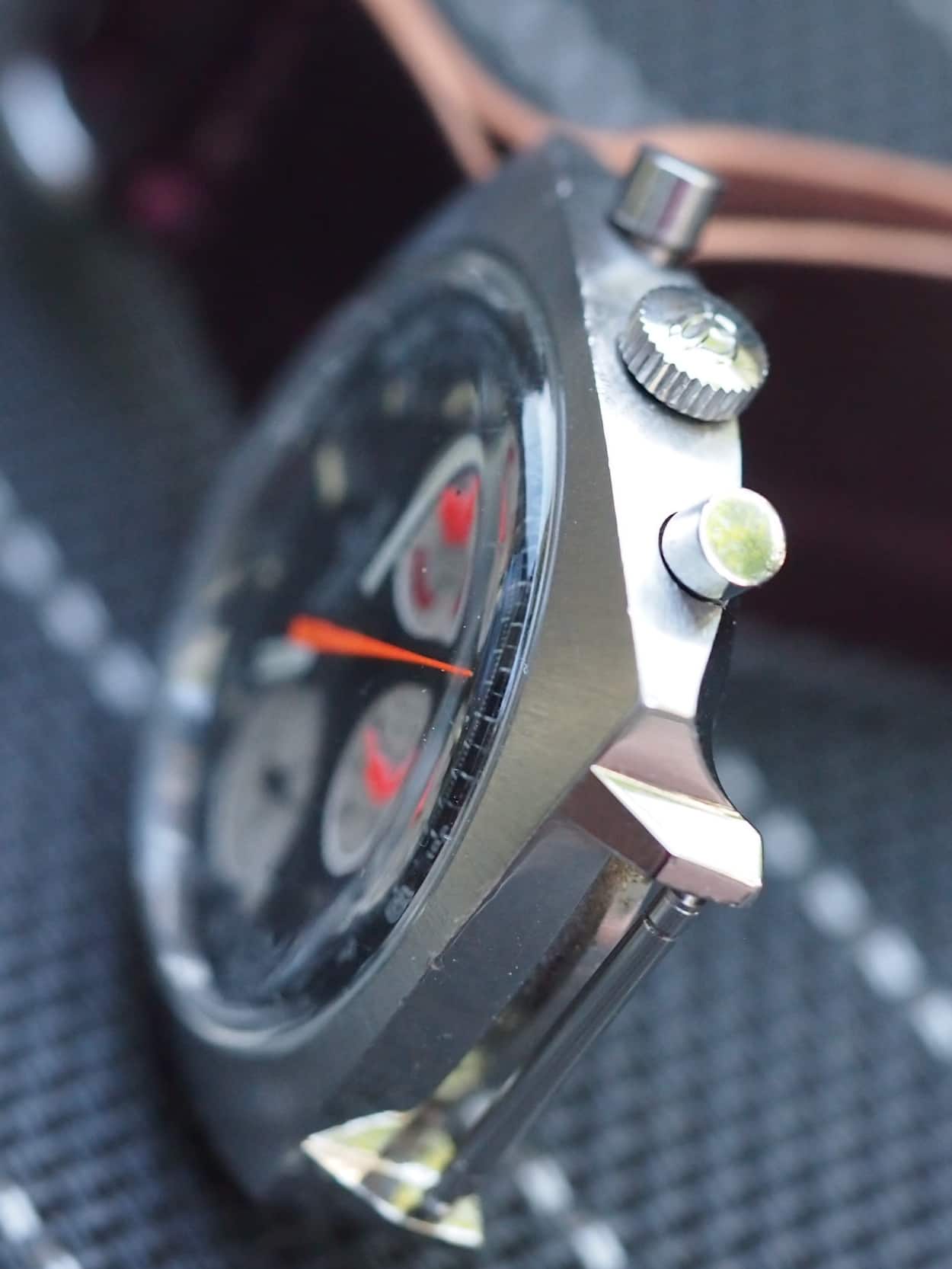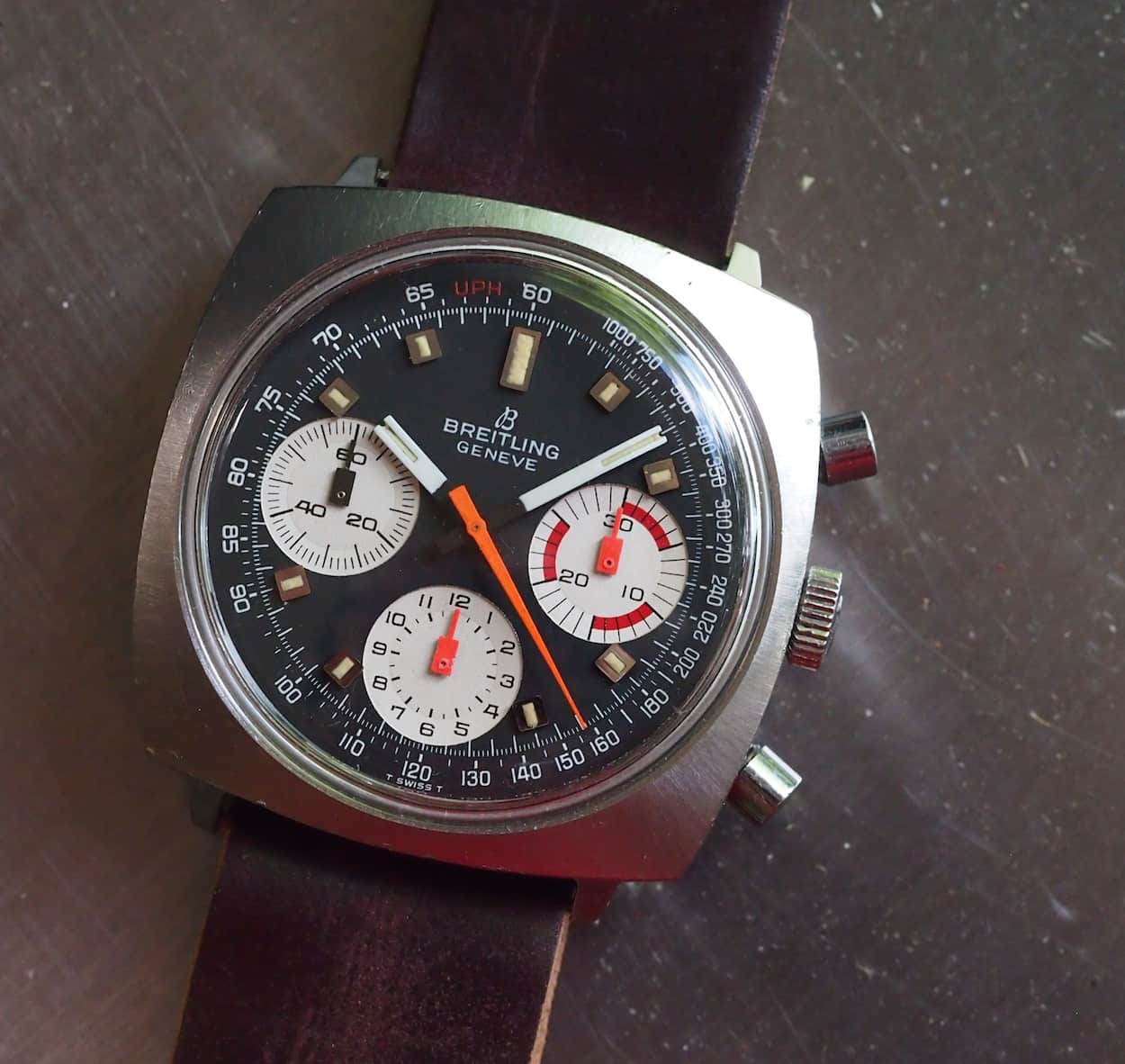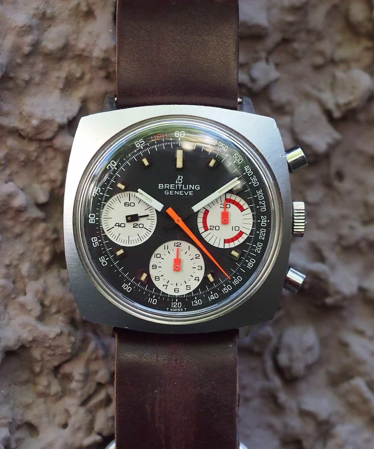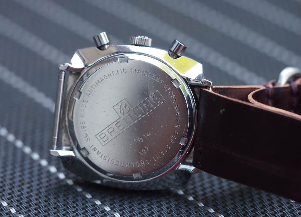 I’m not fully up to speed on how difficult it is to find a Top-Time 814 as I hadn’t been looking, but I’ve been told that white dial versions are somewhat tougher to source. It does seem that a few 814’s are always present on chrono24 and, less so, on eBay. There are a lot of vintage Breitling references out there, but collectors now seem to be taking notice and are starting to give them more focus. The 814 is one of these references that is starting to gain some traction, but it is still affordable and buyable in the $1500-2250 range. In fact, at that upper end, the watch should be a time capsule piece in my opinion. As always, with chronographs, the details count heavily. Ensure all the pieces are there and don’t bet on finding loads of spares like hands, etc. The orange bits on the dial and hands do tend to fade depending on their past environments, so be on the lookout. Serial numbers for the watch can be found on the outside of the case back, so that’s a nice way of checking if things are at least on the right path. The other big piece to note is case finishing. Ensure you can still see the finishing lines on all faces and that it has not been over polished. Related to this, you’ll note a few dings on my case. Due to its shape, the 814 doesn’t weather a firm smack quite as well as a round case. Ensure that the edges and corners still remain intact and haven’t been polished away; your tolerance for how many dings are too many comes down to personal preference.