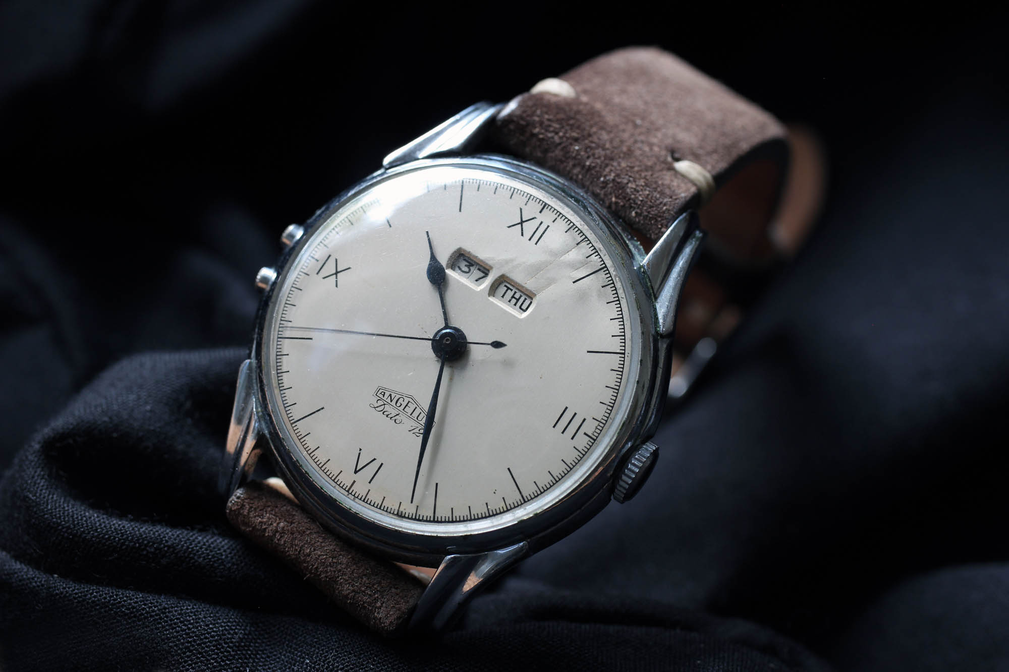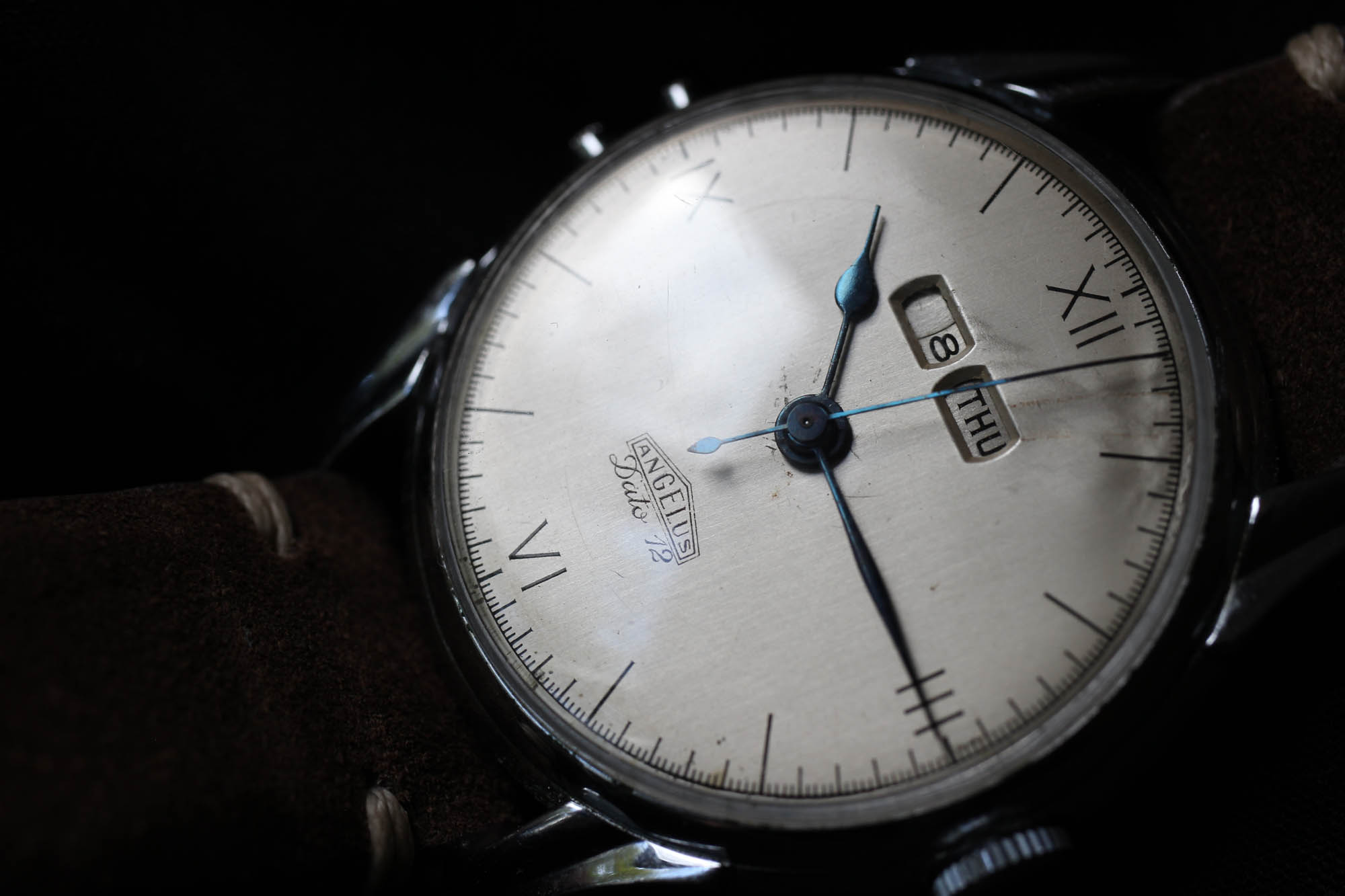 I found my Angelus Dato 12 with a British dealer that I was in touch with regarding another watch of his, an Enicar with a Valjoux 72 if I remember correctly. His name was Scott, and in our conversation, he just casually mentioned that he brought something in from a trip to Hannover. When he showed it to me, it immediately caught my eye as I was already looking for one just like it.