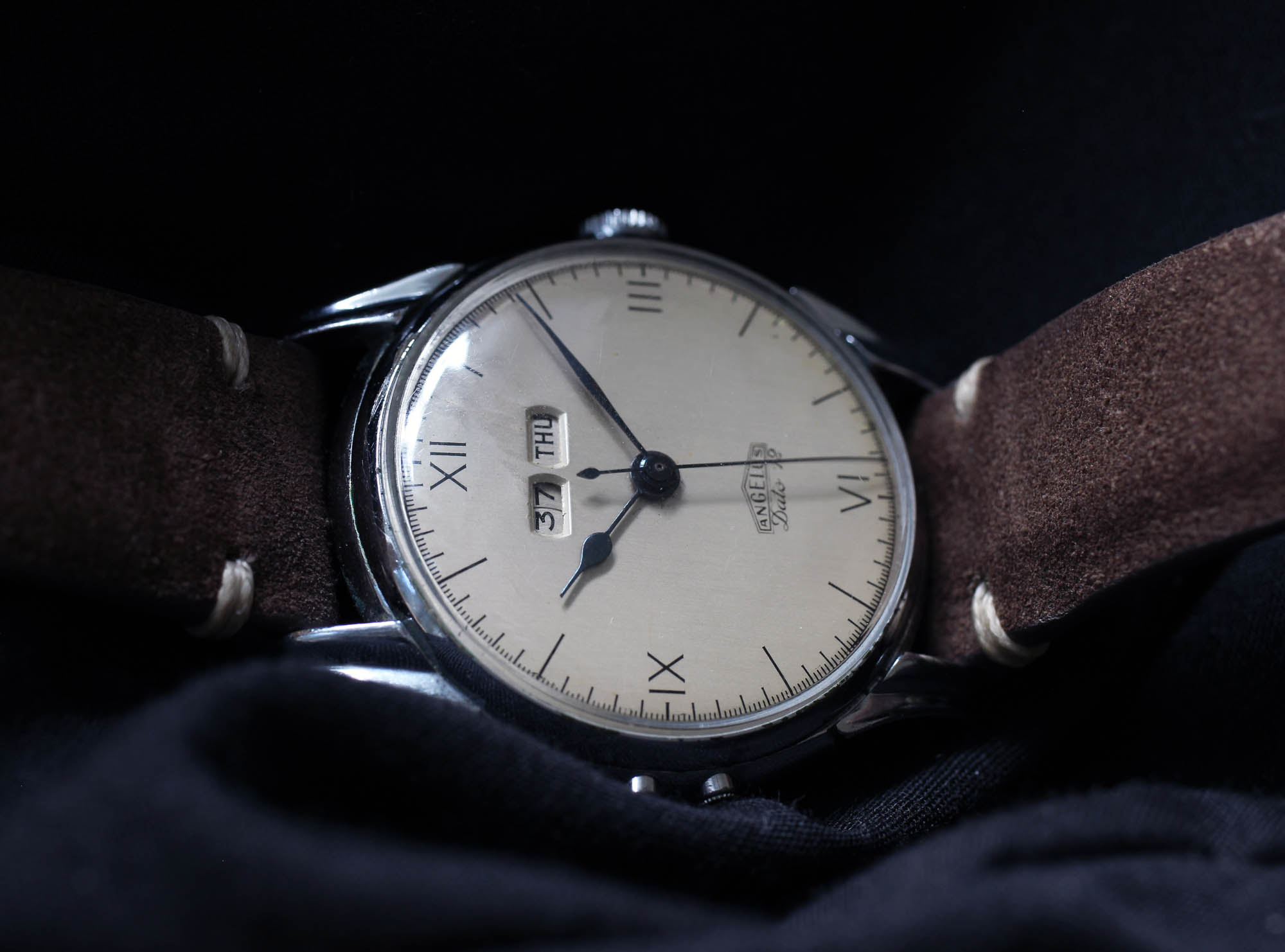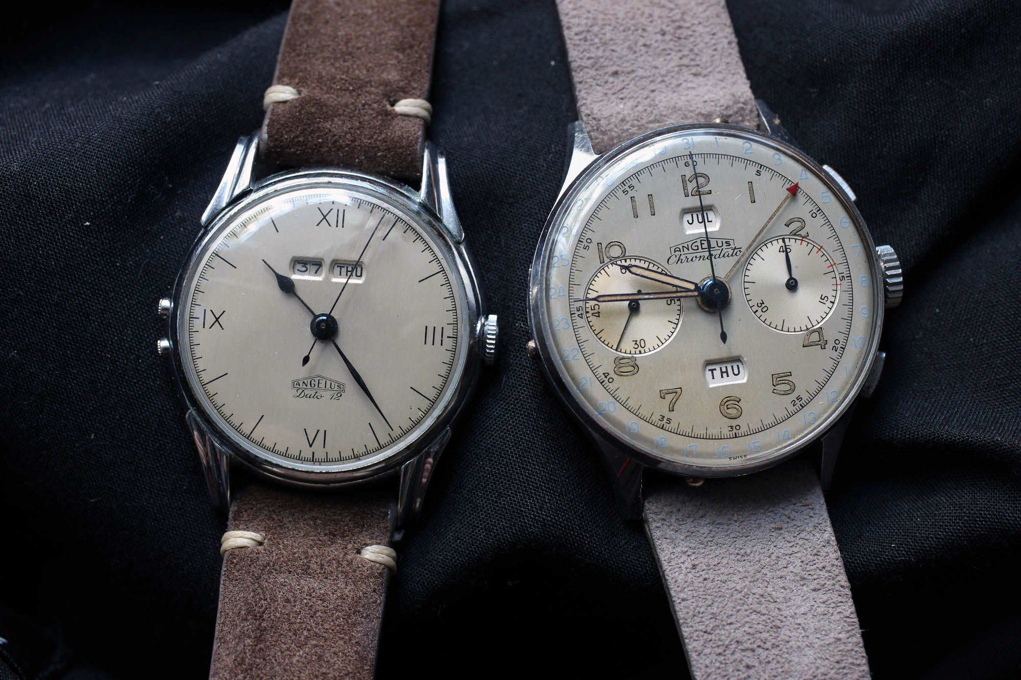 If you’re serious about collecting vintage chronographs, Angelus has some serious candidates to consider, but today we will discuss the Angelus Dato 12. Regarding the chronographs, though, notable examples include the Angelus L.E. chosen by the Hungarian Air Force or the Angelus Chronodato introduced in 1942 as the world’s first chronograph with a full calendar (day-date and month). The title‚ “world’s first” always helps, and the model quickly became popular. Balazs did a marvelous job covering the Chronodato and the whole 21x Angelus movement family. If you missed it, you could find the articles here, here or here.
