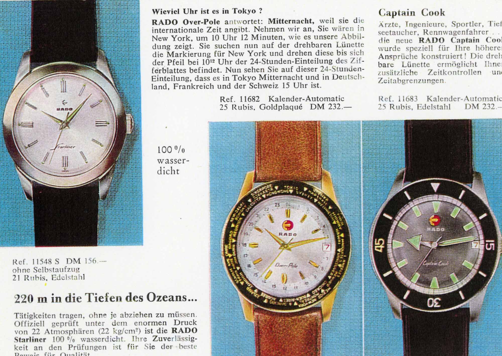 Before we get to some details on the Rado Over Pole, let’s talk a little about the history of the watch. I was stymied and postings on Instagram got a lot of positive responses, but not a whole lot of information. I did chat with one serious vintage Rado collector from Japan and he had yet to pick one up and didn’t have a lot of information on the model’s history either. Google searches yielded little aside from some gold-plated models and later, far less interesting versions in c-cases. So, having just written an article on the recent Captain Cook, I decided to reach out to Fernanda Zapata Vakil of the US PR firm, Gigantem, as they represent Rado in that region. Fernanda gladly offered to reach out to Rado of Switzerland for any background information and, lo and behold, they sent some scans of original catalogs from Argentina and Germany.