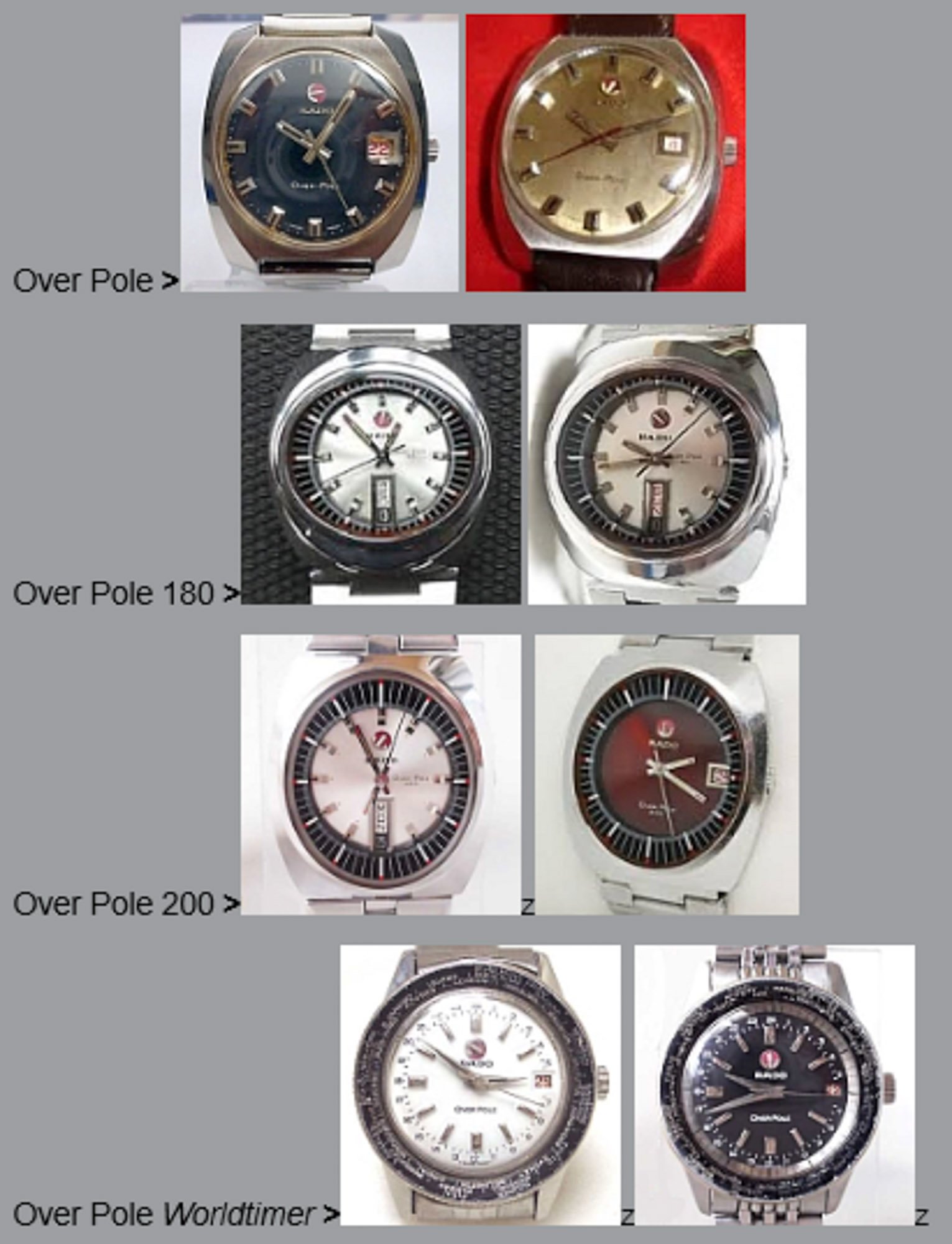 The catalog pictures of the Rado Over Pole contain file names that, in one case, date back to 1958! I’m not sure if I’m in agreement with that early of a date, but perhaps it’s possible. Other years noted are 1961 and 1962. The other interesting point is that the Over Poles in the ads are always shown in gold-plated form, but the history picture does show us stainless steel versions.