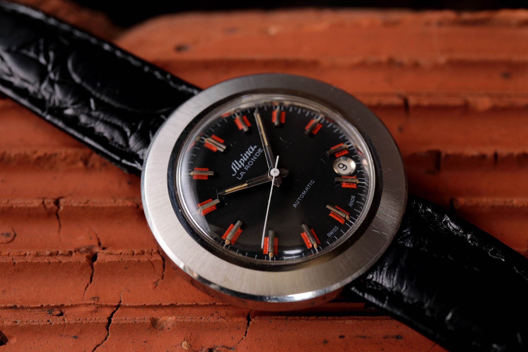 The most complicated part of shooting this watch was to find an old brick to match its vibrant indexes. Meet my lucky catch Alpina La Ronde.
