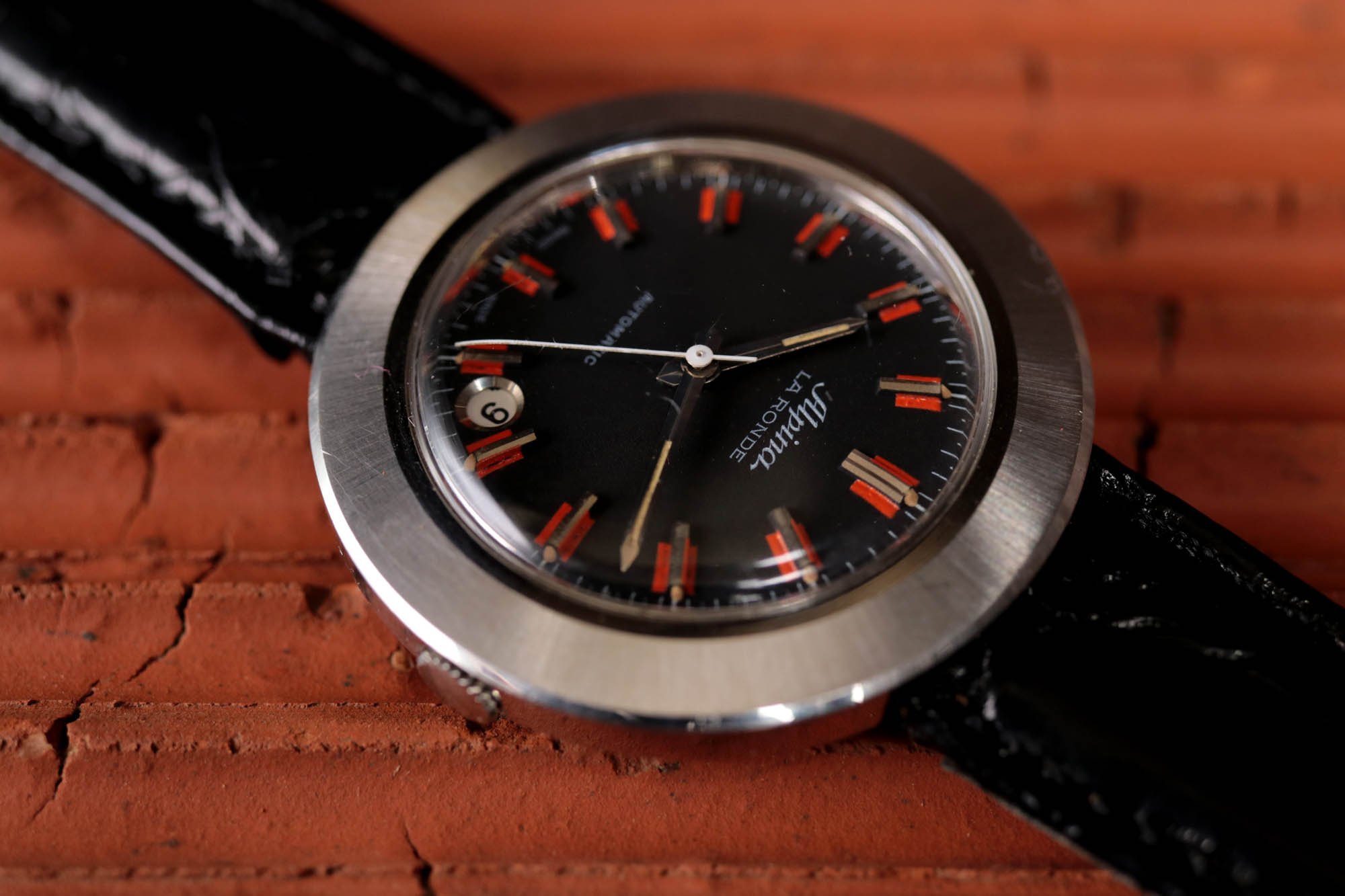 I spotted the Alpina La Ronde in a generic black & white Alpina print ad from 1960s or 1970s. Here I do underline word black & white ad, because it was a hell of a surprise for me to find out that the hour indexes are printed in a vibrant brick-red color. I bet you if the ads would have been in color, watch sales would have been much better. Speaking of watch sales, I guess it was no miracle since as of today I have found only four pieces of the La Ronde out there altogether. Mine including.
