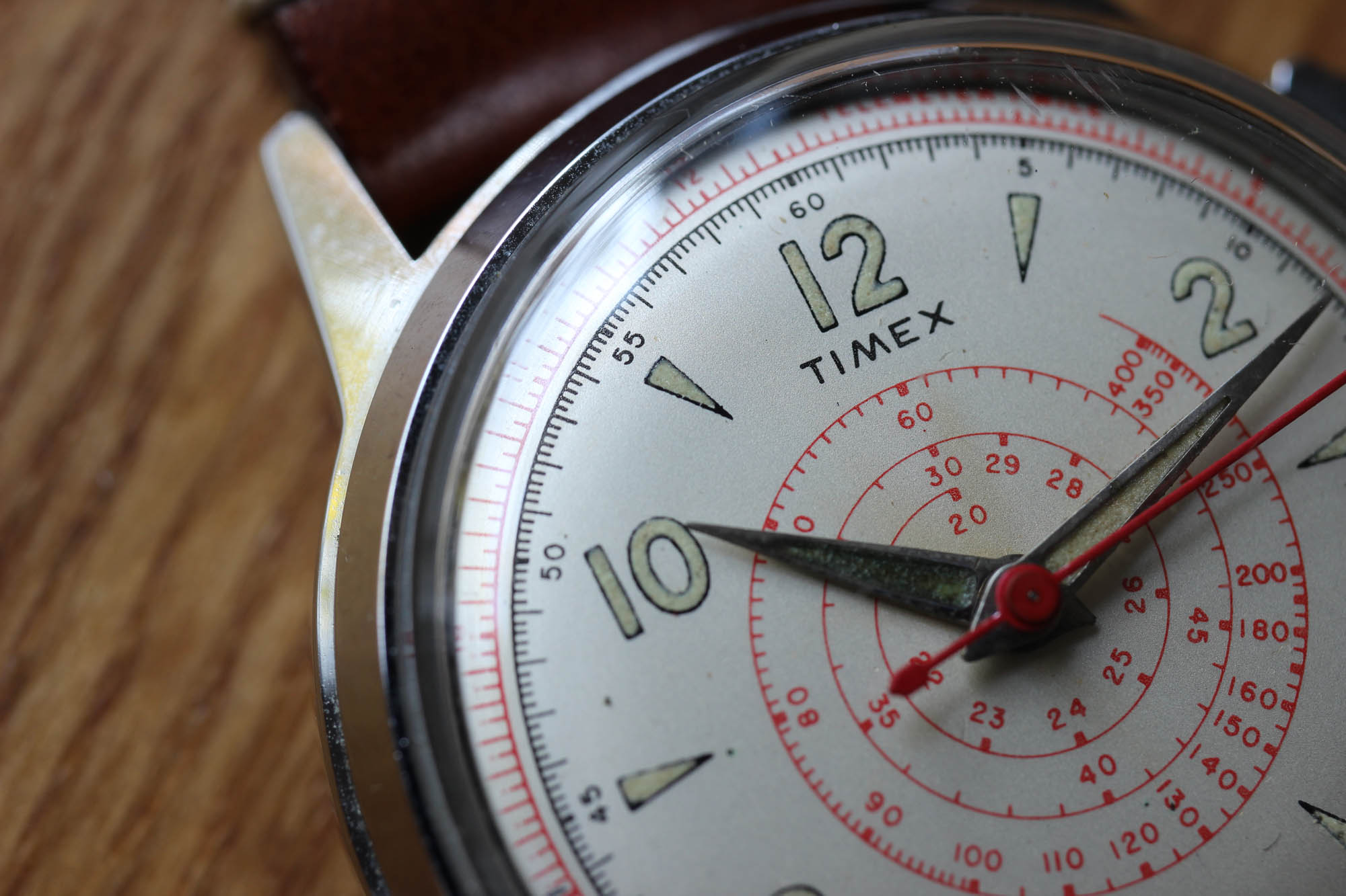 Both the numbers and indexes have a luminous radium material covering, also visible in hands. What’s interesting is the full range of patina variety found in different Southampton models. Reminds me of the Breitling SuperOcean, where you often find discolouration between the hands and dial. The linear ageing is a warning sign for possible re-luming. As with the SuperOcean, you can hardly see the same two Southamptons with same patina. My Timex Southampton has a beautiful creamy patina on the dial, with hands of a more greenish hue.
