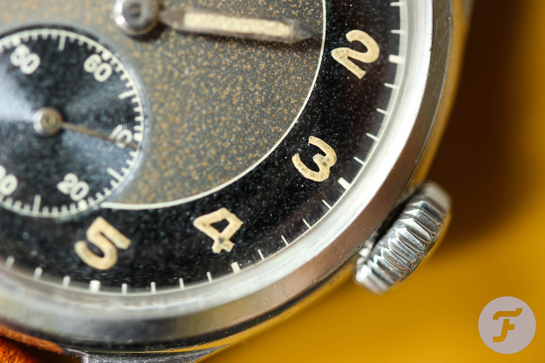 The dial’s beauty struck me right upon arrival. There is something gorgeous and hard to explain when it comes to concentric rings. That’s especially true for this watch because there are not many 5411 models with a gray disc in the middle. Over the years, it developed attractive “freckles” on top that give it a bit of character. But it is the thin and precise white ring separating the black and gray that provides the watch with such a classy look. The seconds hand separated in a small subregister emphasizes the elegant lines.