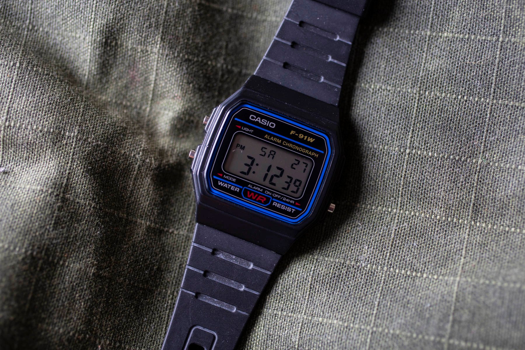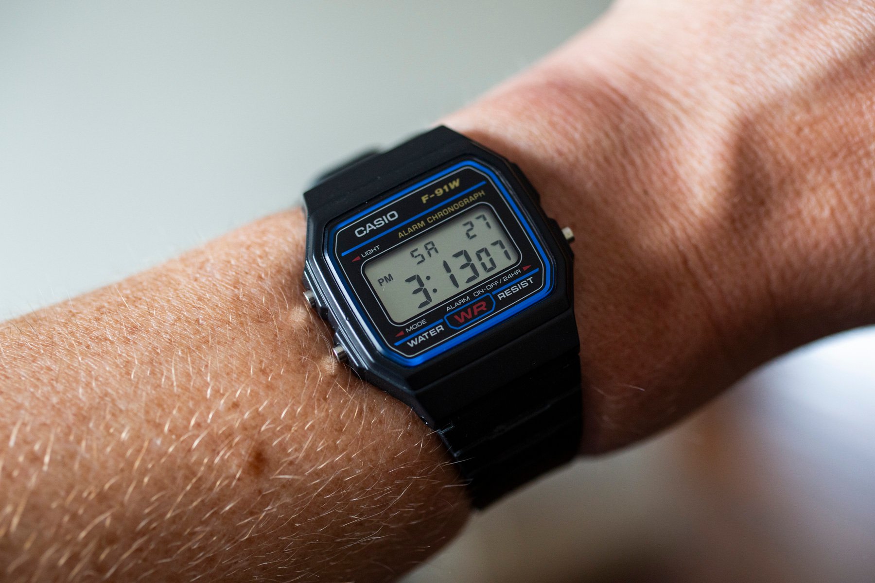 Practically all watch nerds either own this or pretend they’ve transcended it. The Casio F-91W is the ultimate digital watch. It’s 20 grams of plastic magic. This Casio tells the time, and it beeps. It lights up with a glow reminiscent of old Nokia screens. From a security standpoint, it’s unbeatable. You could hold it out to a Parisian pickpocket, and he’d probably just pat you on the back sympathetically. I’ve showered with it. I’ve dived with it. It’s indestructible.