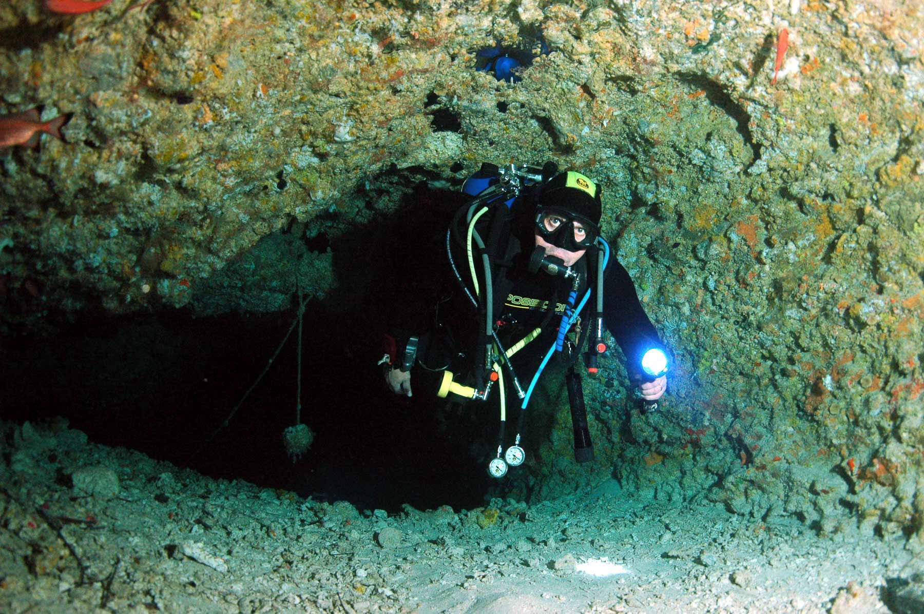 “My worst nightmare came true: a silt-out at the bottom of a very deep cave with a slack guideline while on all fours and under the influence of nitrogen narcosis and helium tremors. My priority was to stand up without losing balance, becoming tangled in the line, or losing it. The quads and two side-mounts did not help. I tried to swim up but failed and became dizzy. I relaxed and inflated the wings; it took 30 kg of lift to ascend 15 meters and get out of the mud and silt.”