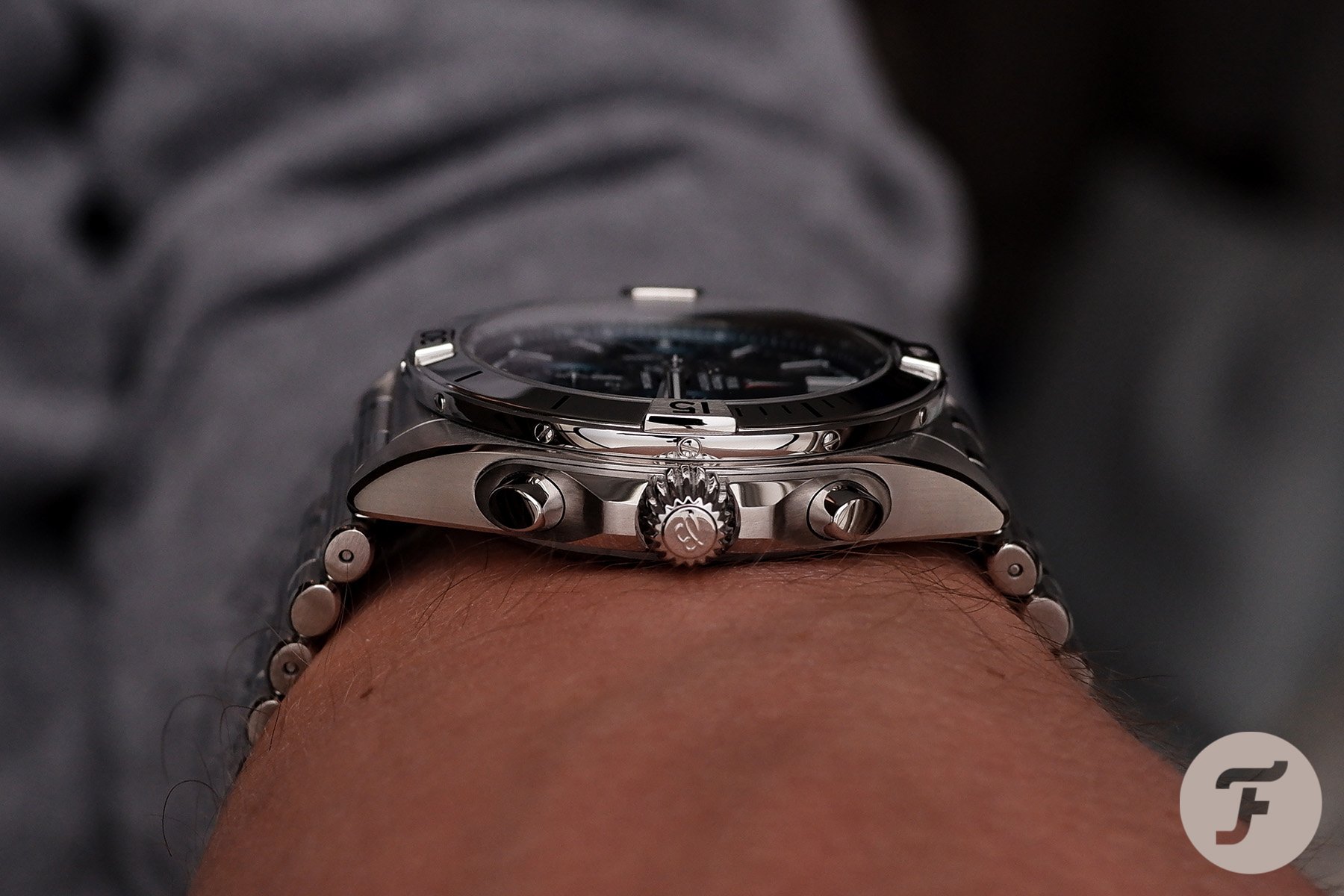 The Frecce Tricolore is the aerobatics team of the Italian Air Force, and in the early 1980s, they were searching for chronographs for their pilots. Together with the Frecce Tricolore, Breitling developed the Chronomat watch for these daring Italian aviators. In 1983, the watch for the Frecce Tricolore was born, and one year later, Breitling made the Chronomat available to the public. It was a Valjoux 7750-powered watch with the typical layout of the dial, with sub-dials at 12, 9, and 6 o’clock. More history on the Chronomat can be found here.