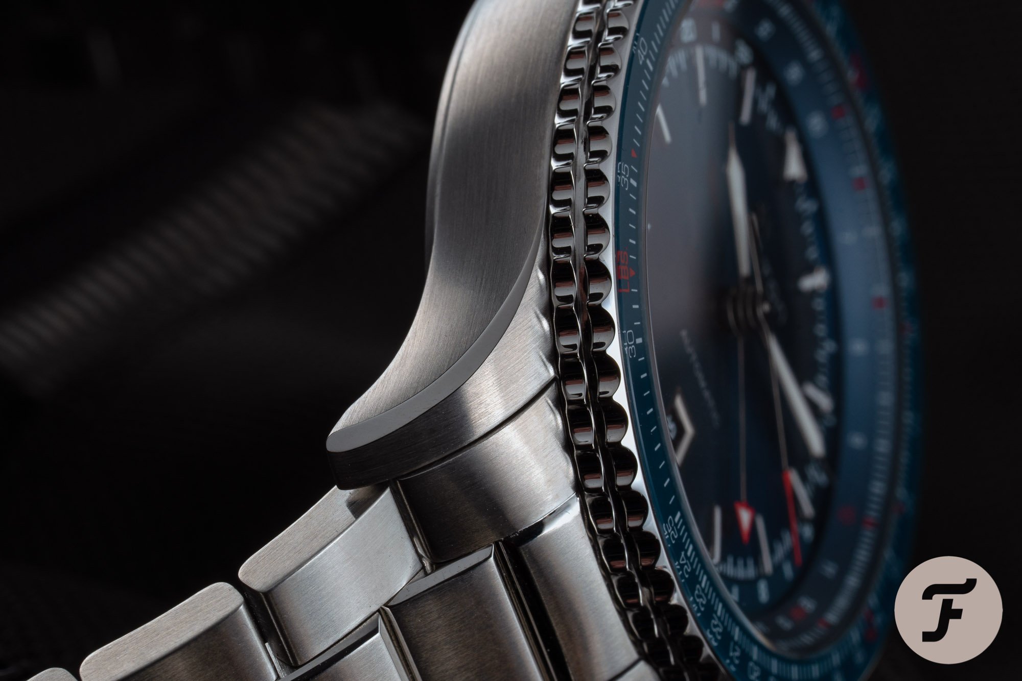 Talking of that mineral glass insert, it is thanks to that component that the Converter models are all water-resistant to 100 meters. That’s quite uncommon for slide rule watches as, traditionally, when you turned the outer bezel you were actually turning the whole sapphire. Consequently, the slide rule function compromised water-resistance given the gap between the rotatable component and the case.