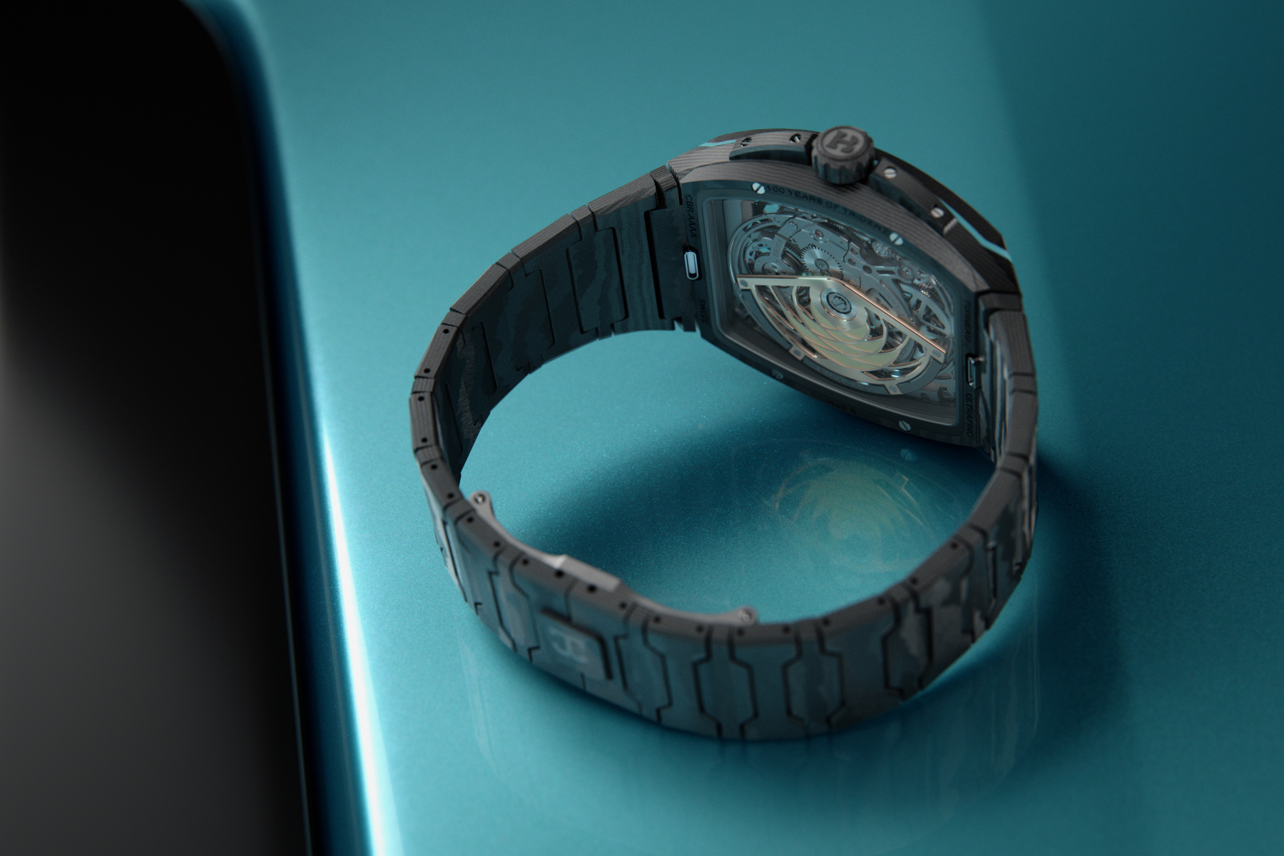 Under the surface, the watch has the substance to back up the styling. Inside is Bianchet’s UT01 flying tourbillon caliber, which boasts a mere 3.85mm profile and still manages to deliver a 60-hour power reserve. The movement uses 225 components, includes a 2.66mm tourbillon cage, and sits inside a case made of high-density carbon fiber with vulcanized rubber. It’s also rated to withstand shocks of up to 5,000 g, the sort of figure that sounds a bit wild in a watch this thin.