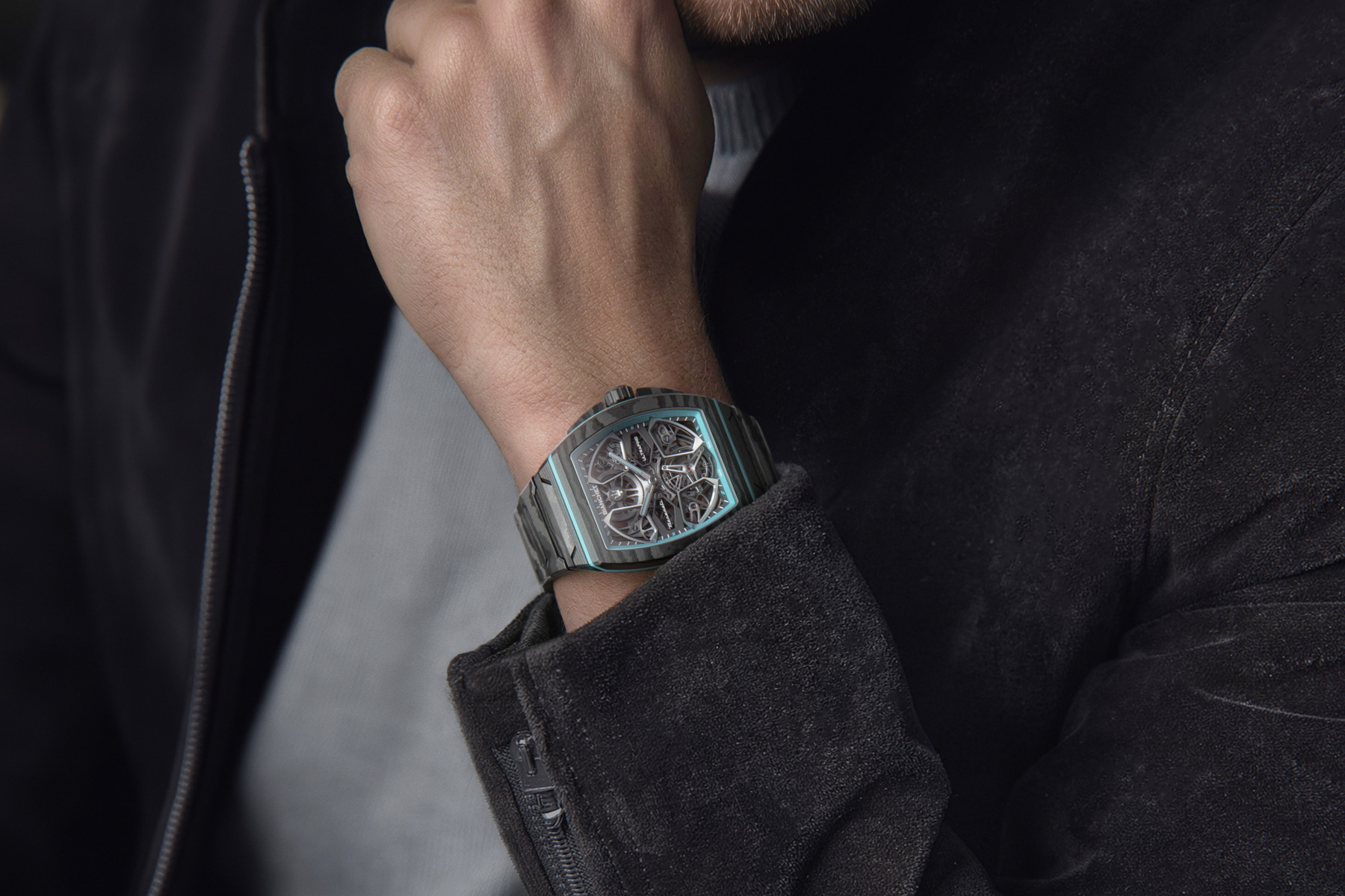 Then, there’s the color. The bright aqua-blue accents could’ve been overdone, but they work well against the darker carbon-heavy case and movement construction. They give the watch a punchier, slightly more playful edge than some of Bianchet’s other pieces, and in this context, that feels about right. It’s bold, but it doesn’t feel random.
