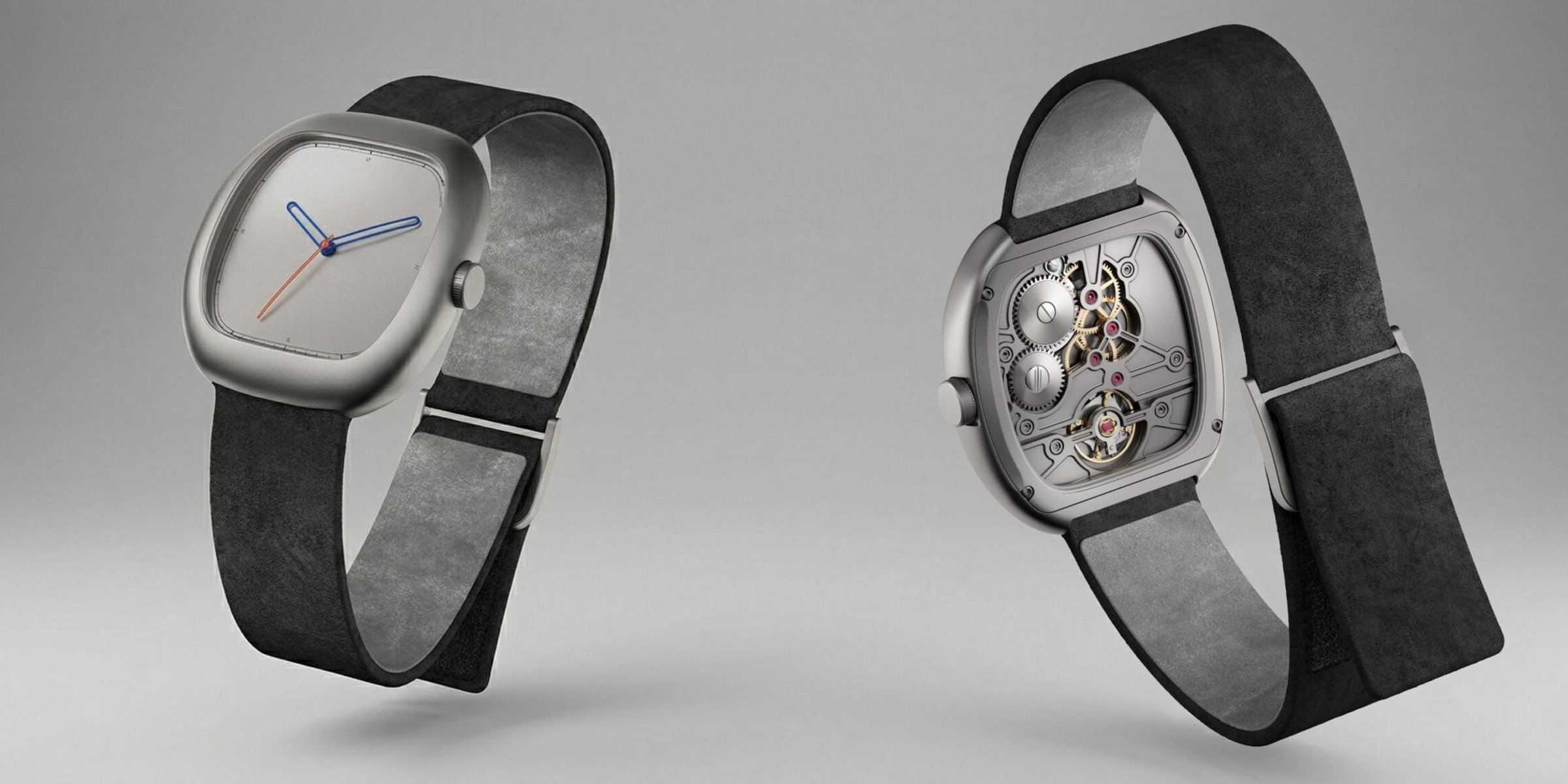 At €7,924 before taxes and limited to 24 pieces, the ACF-03 still isn’t cheap. But it is meaningfully more accessible than what WRK has done before, and I think that comes through clearly. There’s also just a surprising amount of watch here — Grade 5 titanium for the case, dial, baseplate, and bridges, a distinctive shape that doesn’t feel borrowed from anywhere else, a genuinely interesting manual-wind movement, a 32g weight, and an Alcantara strap with a hook-and-loop closure and double-fold buckle, with suede leather as an option. And if you go through WRK’s bespoke program, clients can also personalize parts like the case, baseplates, bridges, and hands. For example, a DLC-treated case and a matching movement are options.