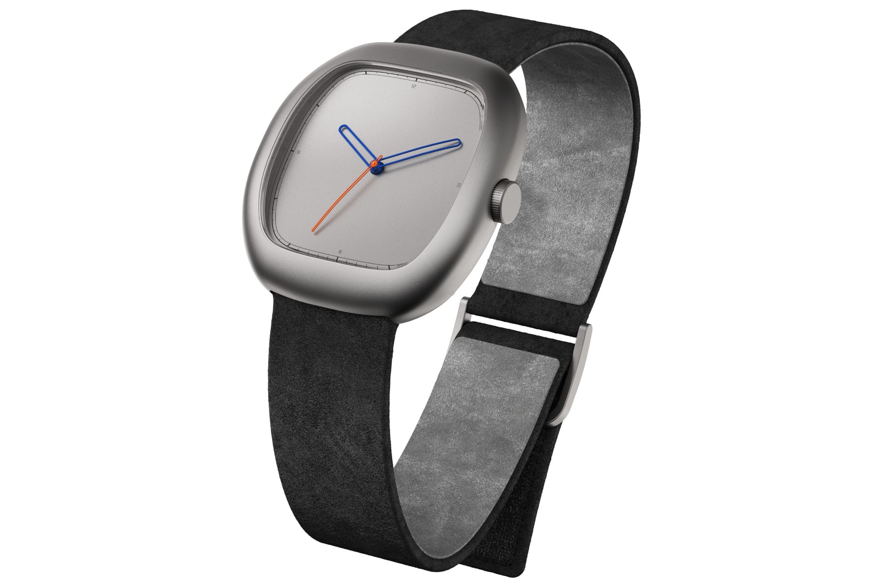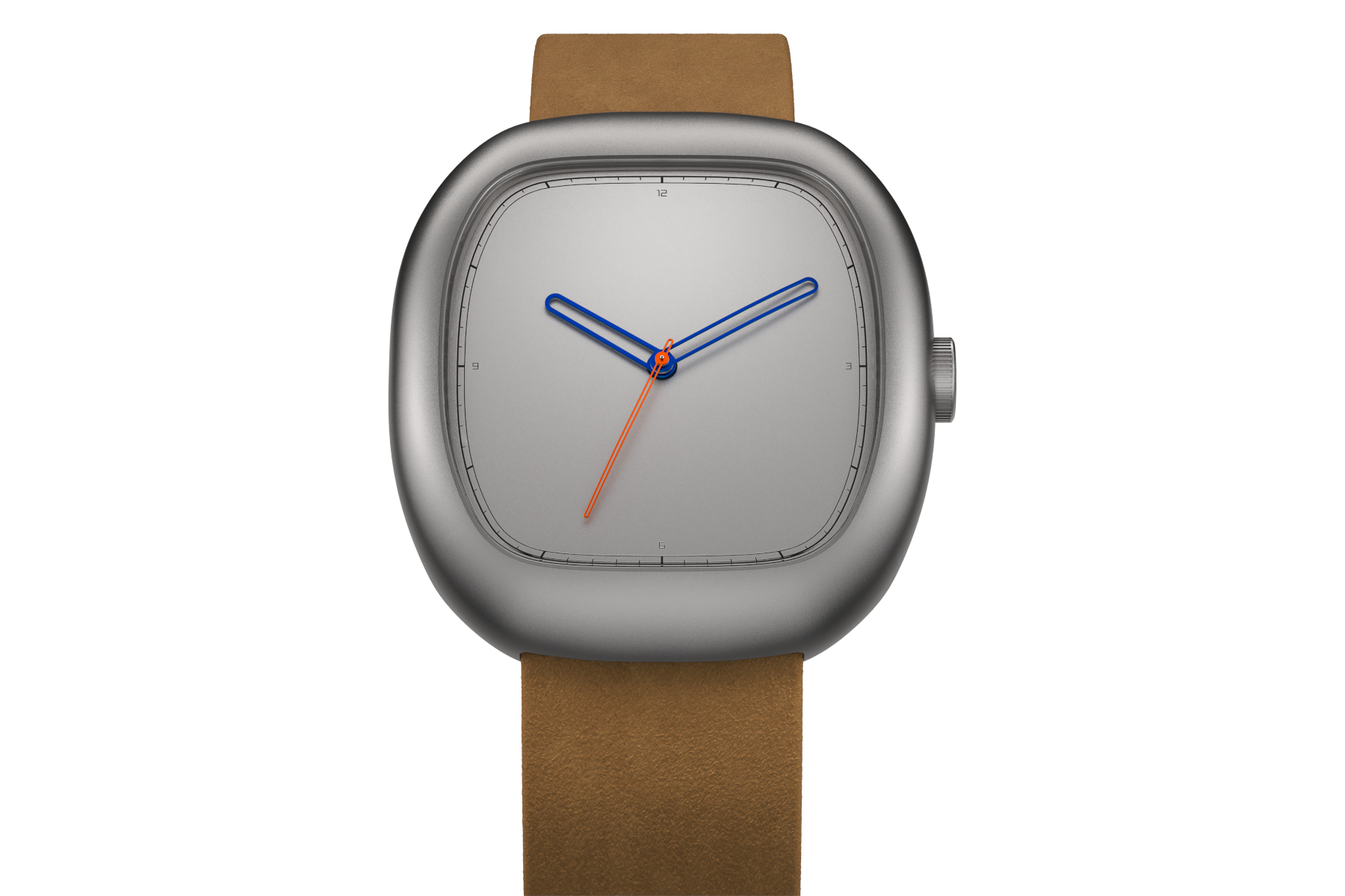 That’s probably worth saying because minimalist watches can easily drift into being a bit forgettable. This one doesn’t. Part of that comes down to the shape of the crystal opening and the subtle framing around the dial, but the hands are also doing a lot. The combination of blue and orange gives the watch a bit of lift without overcomplicating it. It’s just enough. The laser indexes on the glass and the engraved quarter markers are also smart choices because they keep the dial legible without cluttering it.