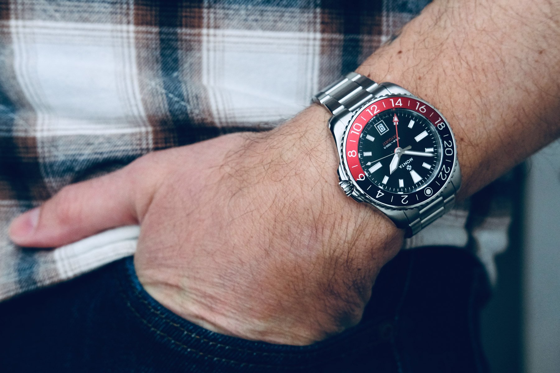 The second model on this list to get the Miyota 9075 caliber is the Traska Venturer GMT. Released in late 2022, the Venturer GMT retails for $695, making it the best-value GMT out there. Yes, I know that is a subjective statement, but let me explain. The Venturer measures 38.5mm in diameter, 46mm from lug to lug, and 10mm in thickness. This means it wears nicely on my 16cm (6.25″) wrist. Furthermore, the three-link Oyster-style bracelet tapers from 20mm at the lugs to 16mm at the clasp. These are quite nifty dimensions, aren’t they?