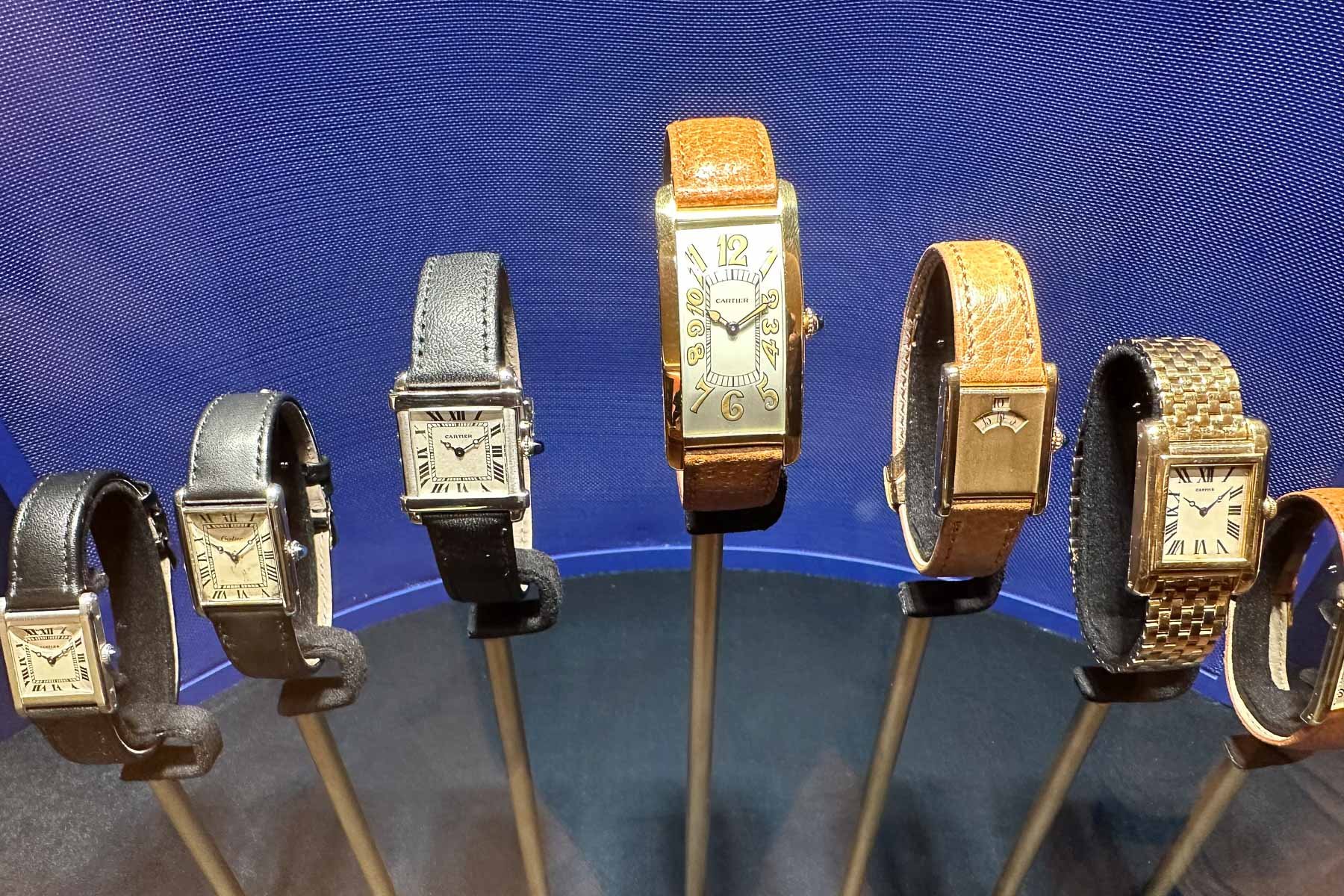 Cartier keeps these pieces in its private collection, and only a few of them sometimes pop up at one of the brand’s expositions around the world. These include the Santos-Dumont in yellow gold from 1912, the oldest version that Cartier has in its collection, the Tank Cintrée that was sold to Fred Astaire, and the Cleich in two sizes! There is even an example of the Tank à Guichets and three different models of the Pebble, including a smaller one. Next to these two vintage versions — one from 1972 and the small one from 1973 — the new 2022 re-edition Pebble is also on display. There are many more, including pieces from Cartier London, but I shouldn’t tell you everything.