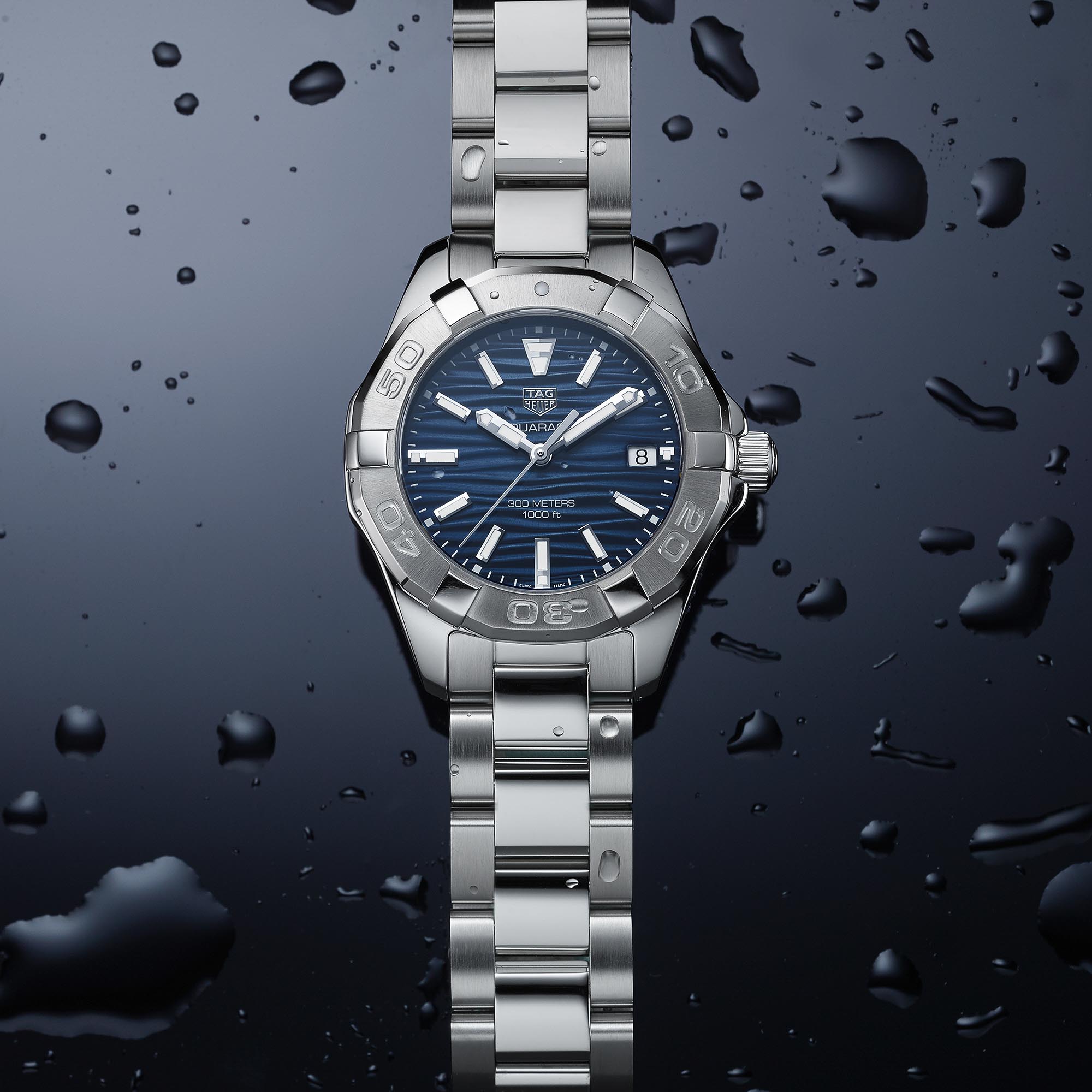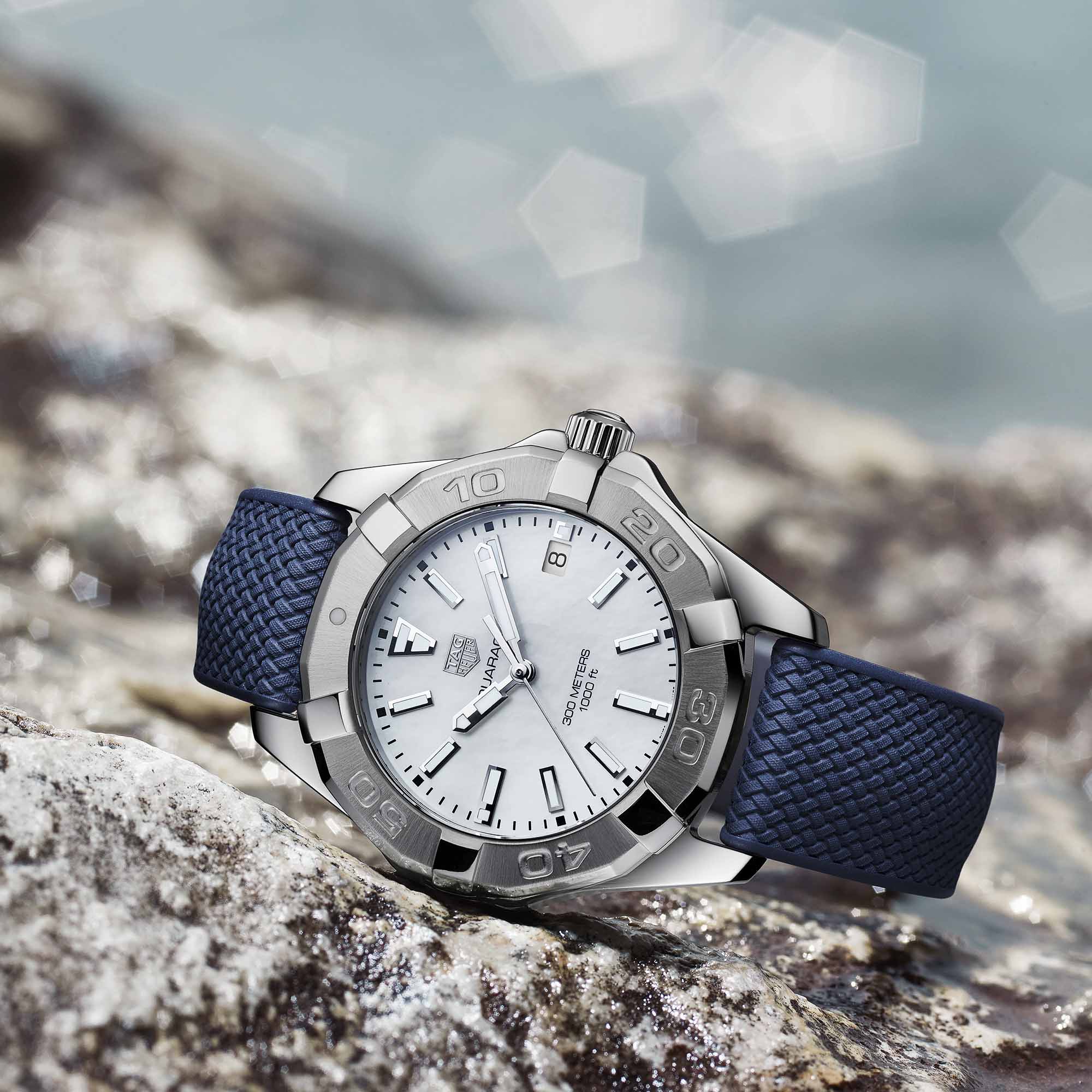 There’s also a version with a mother of pearl dial on a blue rubber strap (1,250 Euros). The blue dials have a wavy pattern on them that remind me a bit of the Seamaster 300M, but they’re all good looking. As mentioned, at 35mm, they also hit a sweet spot in terms of size. For more information, hit the TAG Heuer official site.