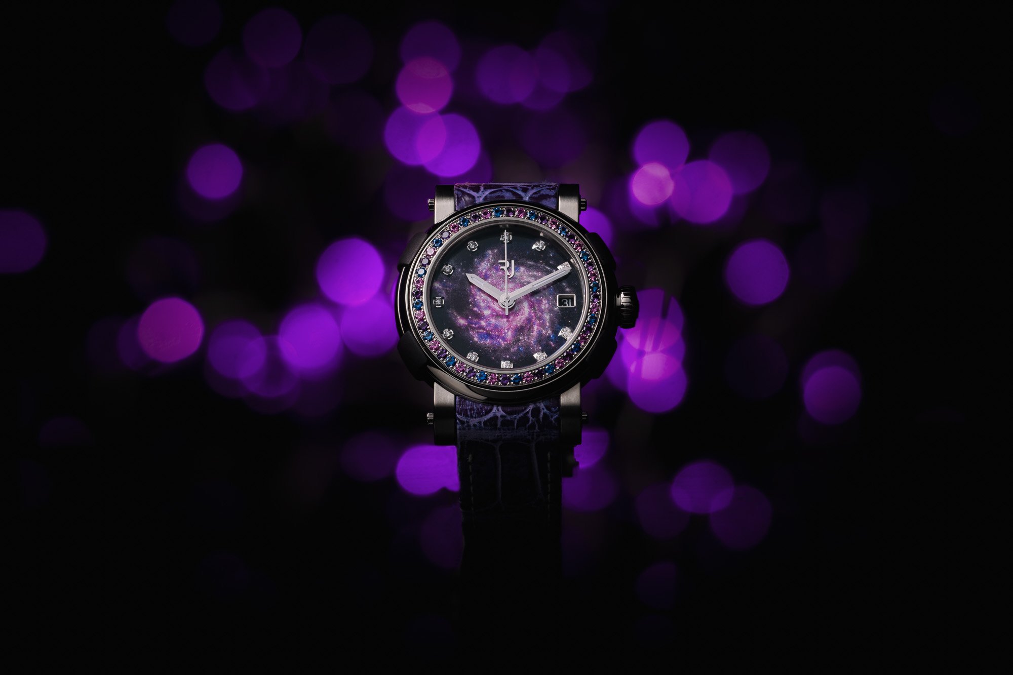 Next up on This Week in Watches is a second piece from RJ (no, not our RJ) called the Star Twist. These are 39mm pieces in either gold (26,900 Euros) or titanium (13,600 Euros) and contain an automatic movement with date. What’s cool here is the mother-of-pearl dial with four layers of paint depicting the Milky Way. But what’s even cooler is the jeweled bezel that can be spun at high speed with just the flick of a finger. I kind of want a colleague to buy one of these so I could bother the watch during meetings. There are four different color dials with different combinations of jeweled bezels. Check them out here.