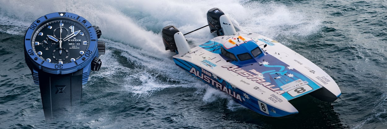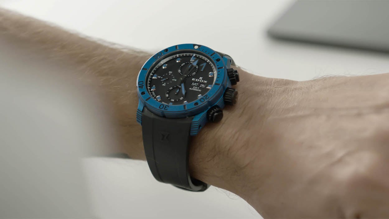 Edox sent us information on the new C-01 Carbon Chronograph and paired it with an announcement that they’ve partnered with Pal Virik Nilson – a driver (or is it skipper?) in the XCAT Powerboat world championships. I must say, that’s an awfully different choice of sponsorship, but it seems every sport has a watch sponsor. Regarding the watch, we have a full carbon-cased 45mm chronograph that’s water resistant to 500 meters and contains what looks to be a 7750 inside. Checking out the case, it has some neat sandwiched layers of alternating carbon colors.