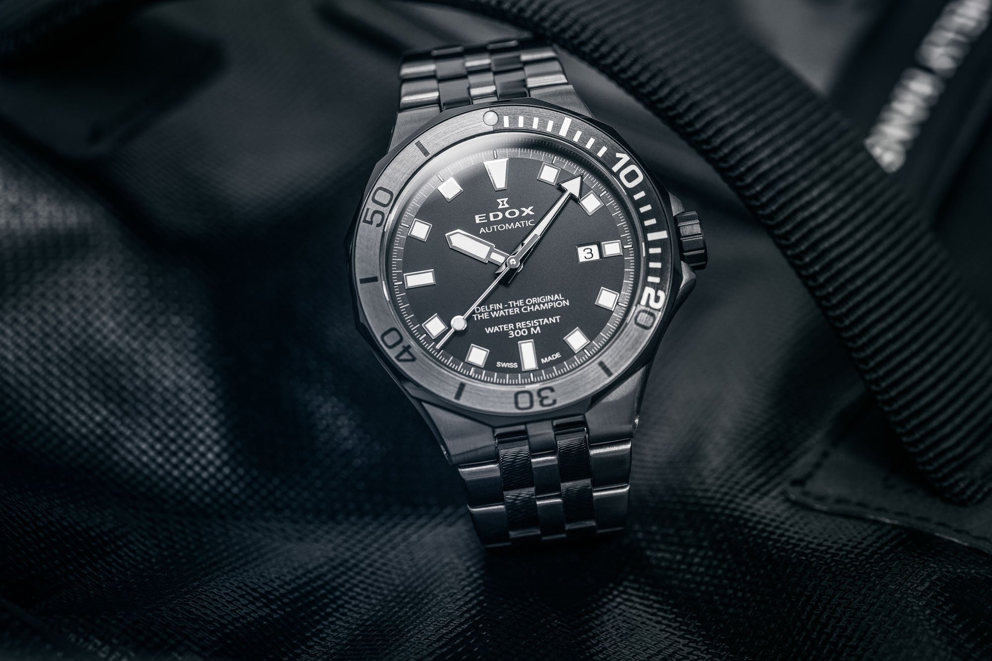 We cover Edox on Fratello from time to time and this week we received word of a new 300M diver from the brand and felt it was perfect for This Week in Watches. Called the Delfin Date, the 43mm stainless diver brings back a name that first debuted way back in 1961 and has been made periodically by Edox since that time. In 1961, Edox debuted a “double O-ring” system and reinforced caseback to provide high levels of water resistance and that same sealing system carries over into today’s new model line. Of note, the Delfin contains a dodecagonal-shaped bezel (I count 12-sides) that reminds us of former quartz models from the 80’s. There are 5 variants within the Delfin line and they range from basic stainless steel to a PVD black version to some colorful gold PVD models with integrated rubber straps. Inside, we have the Edox Kaliber 80 automatic (ETA 2824 or Sellita SW200). Pricing is definitely on the side of affordable from 965 to 1,115 Euros depending on which model is chosen. In my view, these are good looking divers and in this price range, you’re getting a Swiss watch from a brand that’s slightly off the beaten path (i.e. it’s not from Swatch Group or Seiko – the usual suspects in the 1K Euro diver realm). I especially like the differentiation for the first 20 minutes of the bezel. For more info, take a look at the Edox official page.