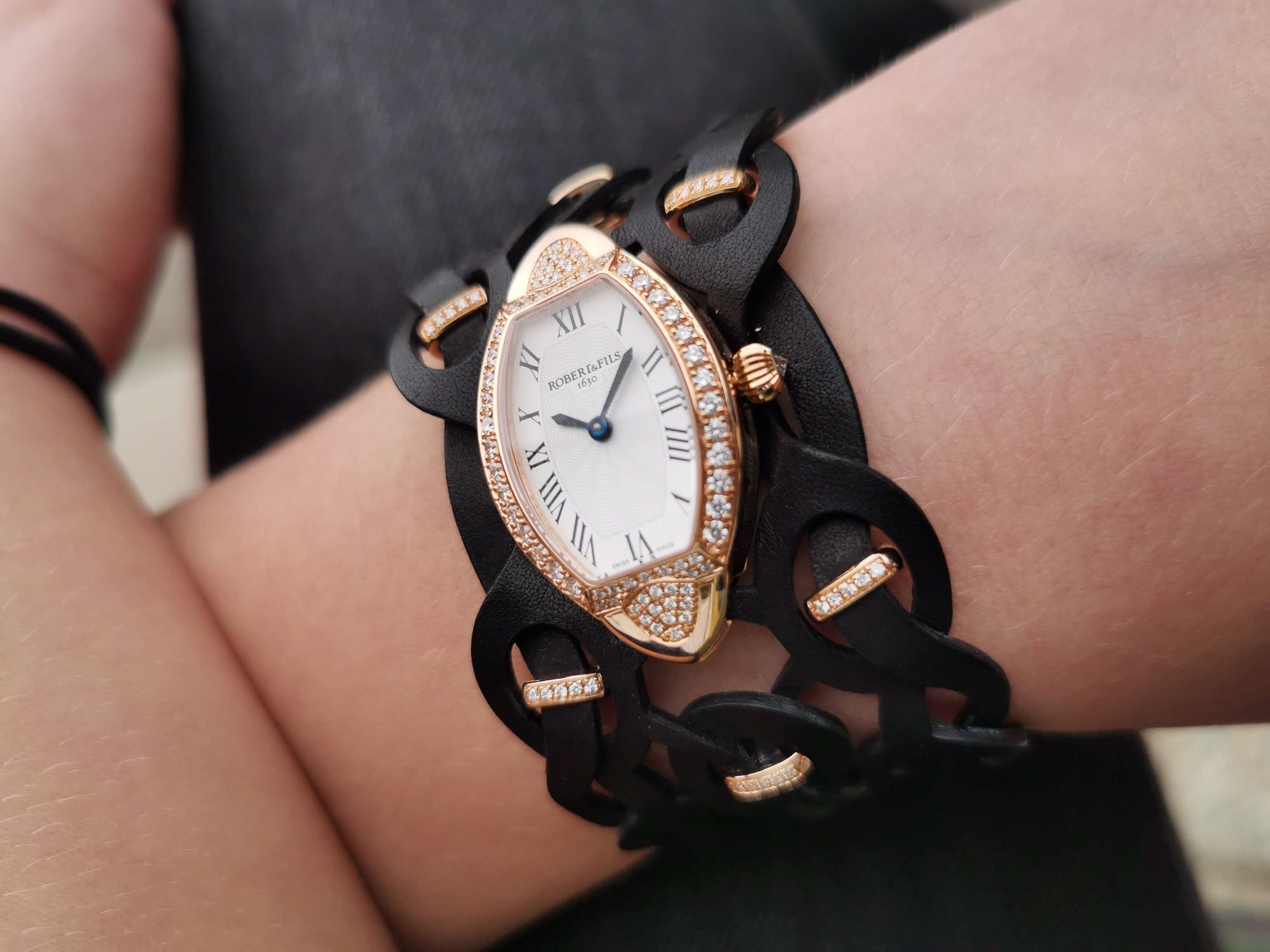 I’ll admit that I know little about Robert & Fils aside from the fact that they were first founded in 1630. That’s old! As an American, I’m often chided for thinking that things older than 1950 are old, but 1630 is old enough for even my European buddies to raise an eyebrow. Well, what’s not that old, but also eyebrow raising is this new Robert & Fils archaemodern ladies watch with an interesting lacework leather “strap”. And while one couldn’t call the 60’s or 70’s old, the movements in these watches date to that period and are of Robert’s own. “Robert”, as it turns out, is the last name of the company and they’re now on their 11th generation of watchmakers from the family. Set in either pink or white gold and in an edition of 10 pieces each, the pink includes 123 diamonds and the white comes with 187. The cases measure 37 x 21mm. Prepare to pay 35,000 for the pink gold pieces and 37,000 for the white gold. When I first saw these watches, I wasn’t so sure about as I thought they looked a bit “50 Shades” with the leather work. But, I’ve changed my opinion – these watches provide for a very different, yet dressy, take on a 30’s/40’s woman’s cocktail watch. They manage to take a relatively small watch head and bring it into the present with the use of leather. For more information, see the Robert & Fils 1630 official site.