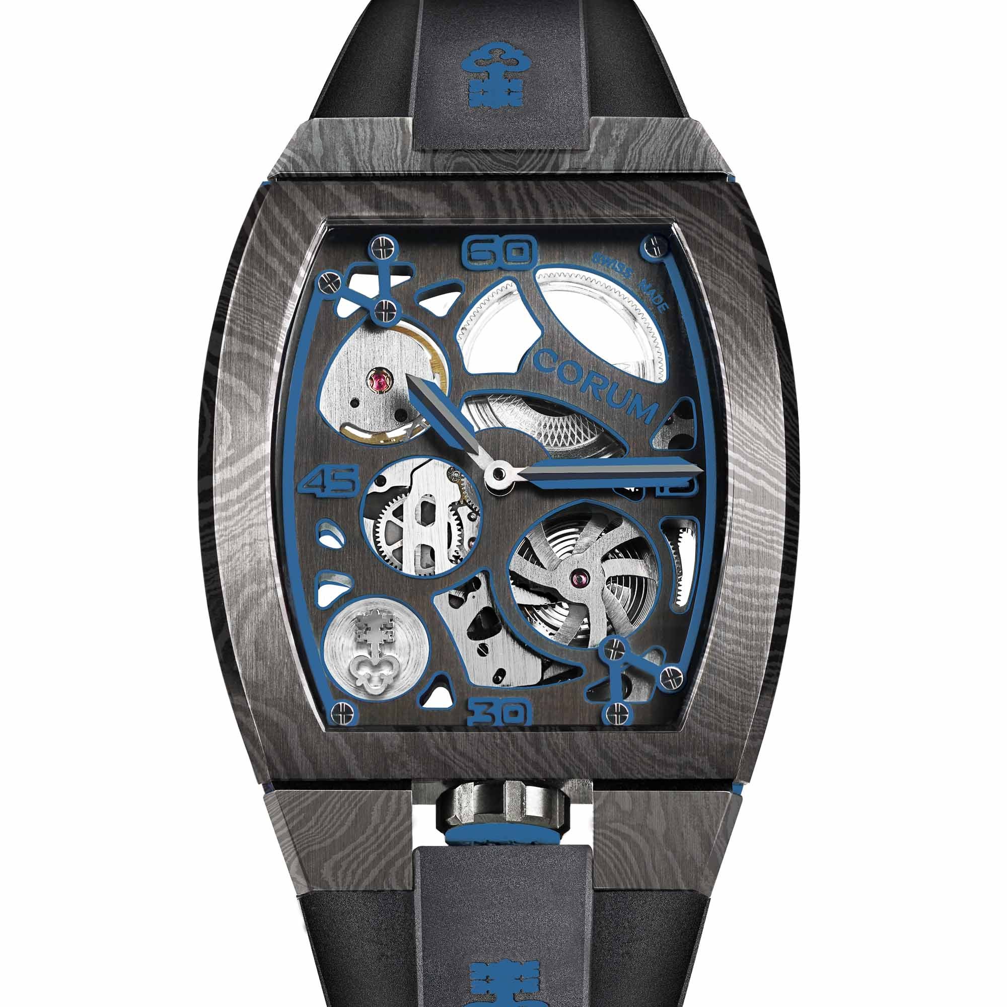 Corum sent word of a couple new Lab 01 pieces. For the first time in the brand’s history, they’ve chosen to use wavy-patterned Damascus steel as the case medium. At nearly 40mm x 55mm, these barrel-shaped watches look rather modern but also call on the famous “golden bridge” models from the brand.