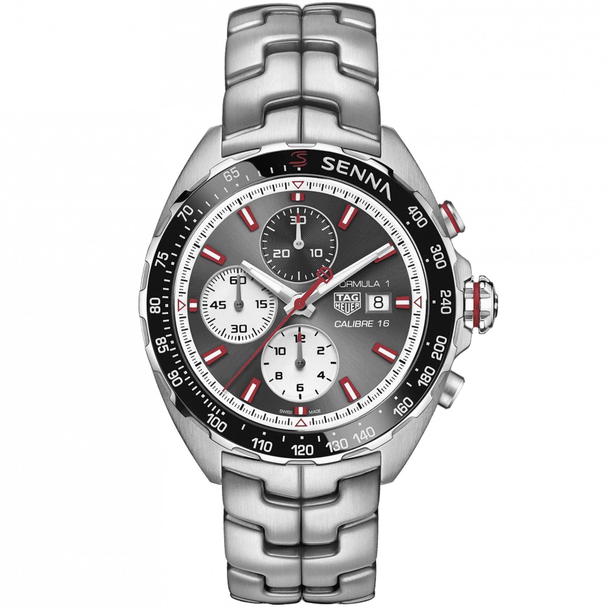 Next up on This Week in Watches are a couple of new TAG Heuer watches related to beloved F1 champion Ayrton Senna. The first is the more affordable option and comes with a great bracelet. The newest TAG Formula 1 model is a commemorative Senna piece that has an updated version of the iconic S-link bracelet that the driver apparently enjoyed so much. The other noteworthy thing is that the watch is mechanical and contains the Cal 16 automatic (an ETA 7750), which is a nice alternative to the vast number of quartz F1’s we see. The colors on this one are strong with grey, white, black and red present. The Senna “S” even makes an appearance on the bezel. The 44mm stainless chrono is available now for 2,900 Euros and more information can be found here.