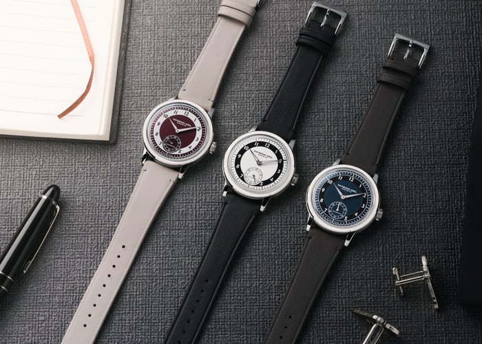 The three references each come with an interchangeable calfskin leather strap. There’s also the option of a stainless steel five-row bracelet. The price for a Millesime Small Seconds Tuxedo on a leather strap is €2,250 / US$2,295. With a bracelet, the watch costs €2,375 / US$2,425.
