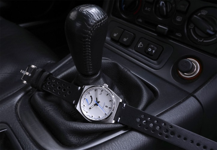 The movement equipped well worth a mention aside, the Miyota 9130, a modern movement which beats at 28.800 vph, with more than 40 hours power reserve, hacking function and manual winding. In addition, the winding rotor of the movement has been decorated with the Gibralfaro logo, which represents one of the mythical stages of the Gibralfaro Rally, the “Casarabonela” stage.