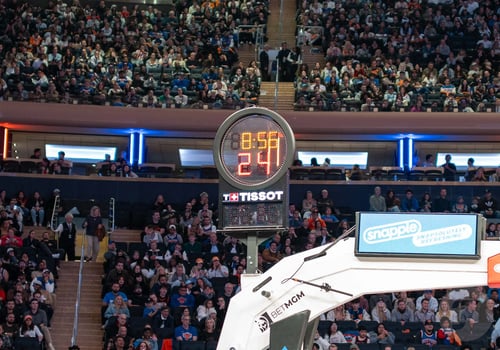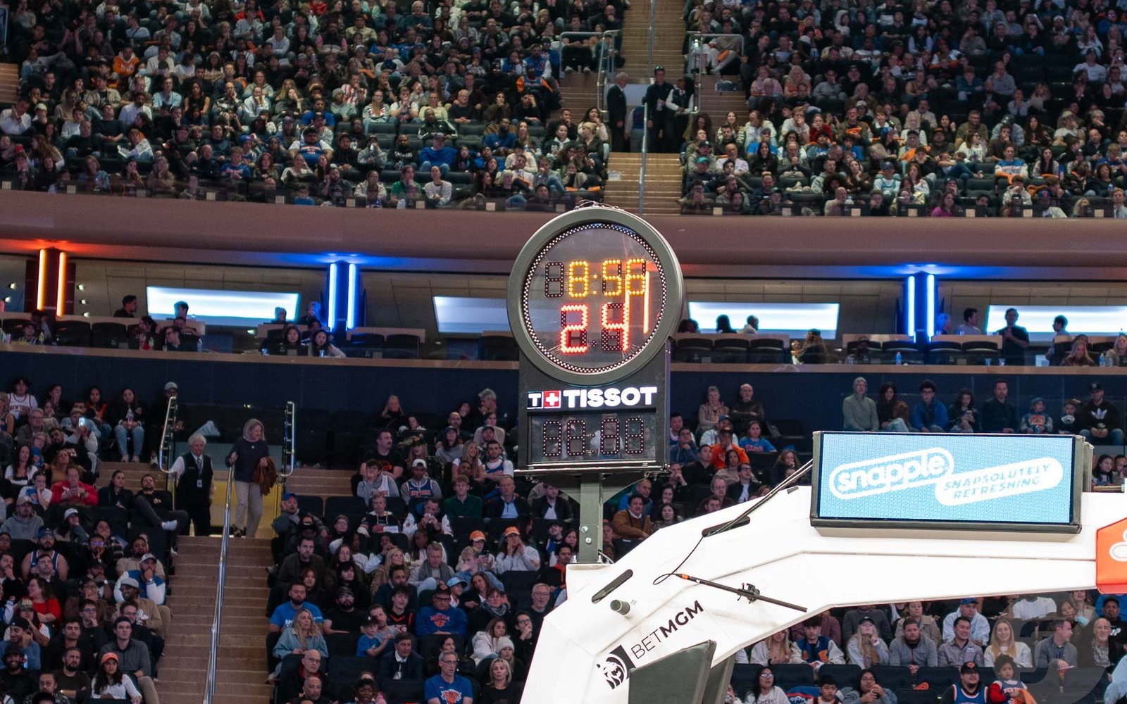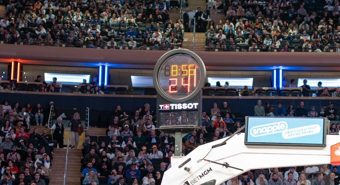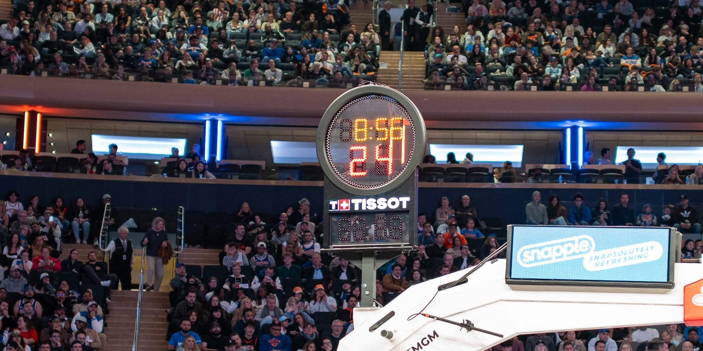 The 2025/2026 preseason game between the Knicks and the Charlotte Hornets, which my colleague Dave and I had the pleasure of watching almost courtside, marked a glimpse of basketball’s next evolution in timing technology. After a decade-long partnership between the NBA and Tissot, the Swiss watch brand reinvented the classic shot clock with a more modern, rounded look, among other enhancements.