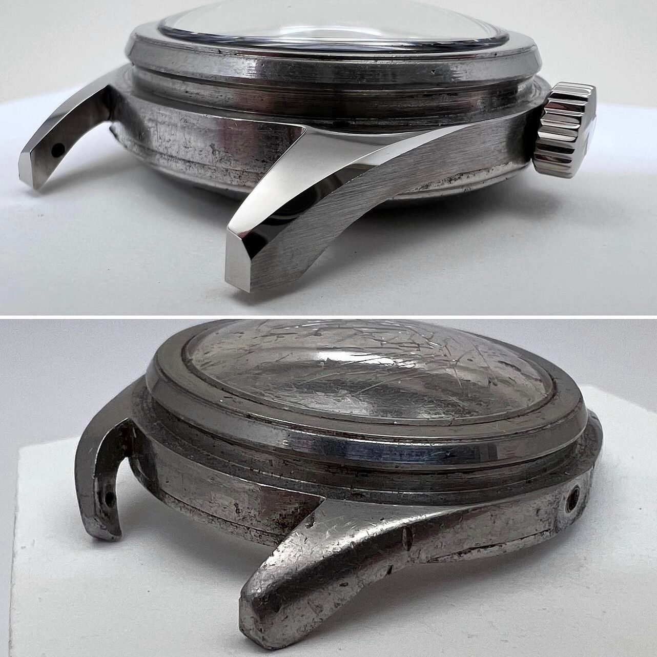 Modern watch restoration techniques include laser welding new material onto the case. This way, the case is brought back to its original girth and then refinished. Magicians like Zimmerman Watch Repair can make completely ruined cases look brand new again. You can make that 1962 watch look like new old stock if you want. The question is: should you?