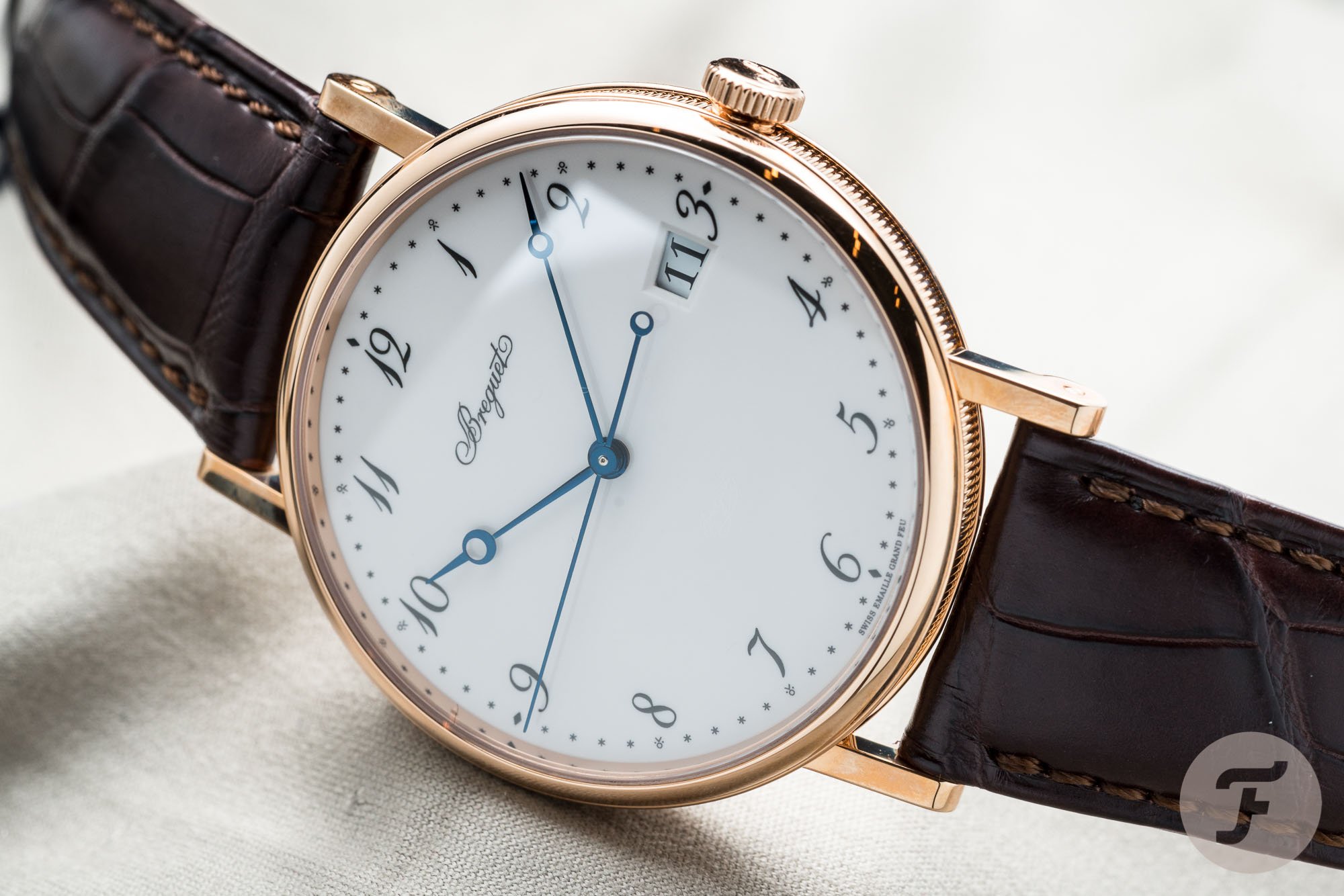 Perhaps closest to the favoured Patek Philippe 5227 in terms of prestige and finish is this Breguet Classique reference 5177. Available in quite some variations, including variations with the beautiful hand-engraved dials (on rose machines), we chose for this 5177 with a “grand feu” white enamel dial for our Top 10 dress watches overview. With a modest diameter of 38mm and a thickness of 8.8mm, it is one of the smaller watches in this overview. The Breguet Classique doesn’t need to be loud. No large brand name on the dial, no logo, no other information than the strictly necessary. The Classique 5177 is powered by a self-winding caliber 777Q movement, with a power reserve of 55 hours. The retail price for the Breguet Classique 5177 with white enamel dial is CHF23,100.- (including VAT).