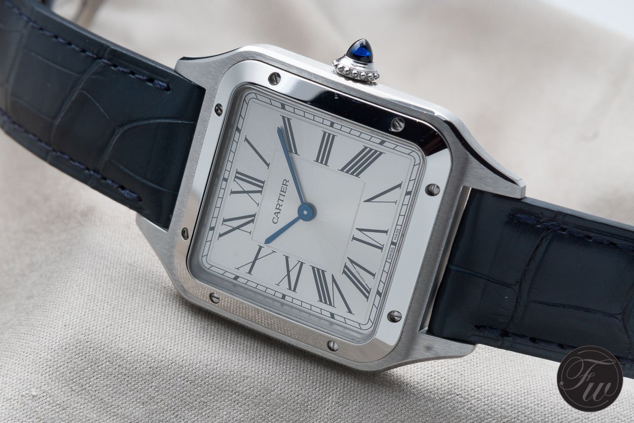 We were pretty excited about the new Cartier Dumont that was introduced last January. There was only one big but, and that’s the use of a quartz movement. It is quite a specific and high-precision quartz movement, but still, it is quartz. That will probably not speak to everyone (we covered the use of quartz movements in high-end watches here), but if you can appreciate a quartz movement, the Santos Dumont deserves further investigation. We love the classic design, the polished bezel with screws, a beautiful crown with blue synthetic cabochon-shaped spine and wonderful design and iconic dial. Simply lovely. So is the retail price of €3800,- (including VAT). You will buy yourself a true classic that will accompany you perfectly during more formal occasions, one of the reasons it is on our Top 10 dress watches overview. Or just with jeans and Polo shirt. The Santos Dumont has a case diameter of 43.5mm x 31.4mm and a thickness of 7.3mm.
