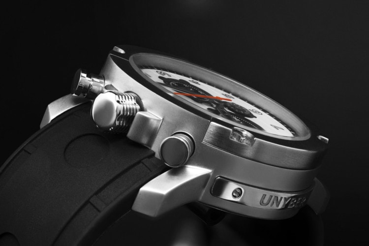 So what is the Un series all about? Essentially, they are impressive, 15mm in height with a 44mm. width (45 mm. with side wings), bullhead chronographs that will not leave anyone indifferent.