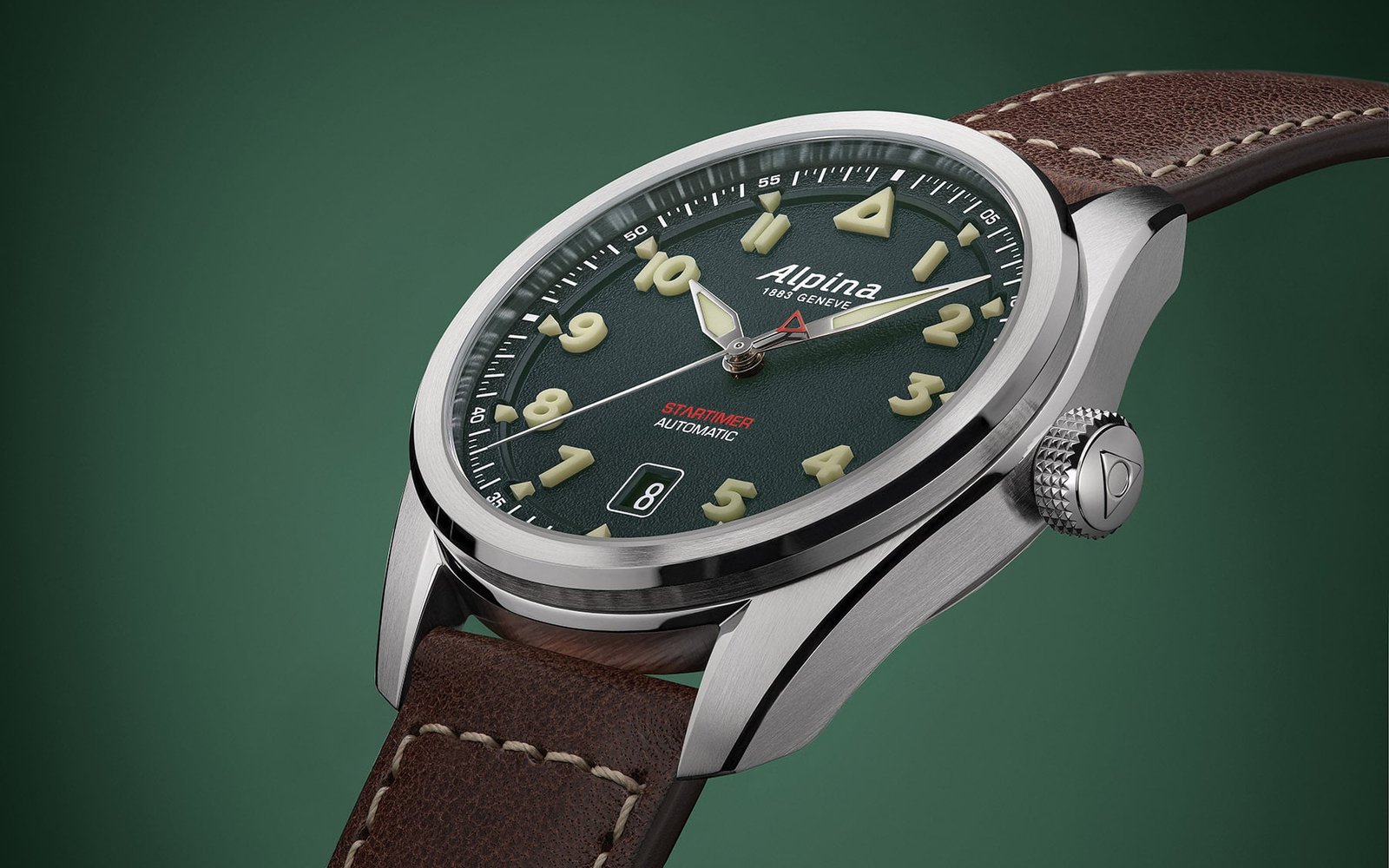 I have a soft spot for aviation watches. While their historical and functional roots are often romanticized, the design advantages are very real. Unlike dive watches, which sacrifice dial space for a rotating bezel, or chronographs, which can feel cluttered, pilot’s watches remain refreshingly clear. By minimizing bezel width and emphasizing contrast, they prioritize legibility above all else. As a result, pilot’s watches often deliver pure timekeeping efficiency. In fact, they may be the most ergonomically considered category of all. Alpina clearly understands this brief. For the new Startimer, the brand removes the 12-hour bezel scale and satin-brushes the case for a primarily matte finish. Additionally, the signature crown features four rows of knurling, ensuring excellent grip even while wearing gloves.