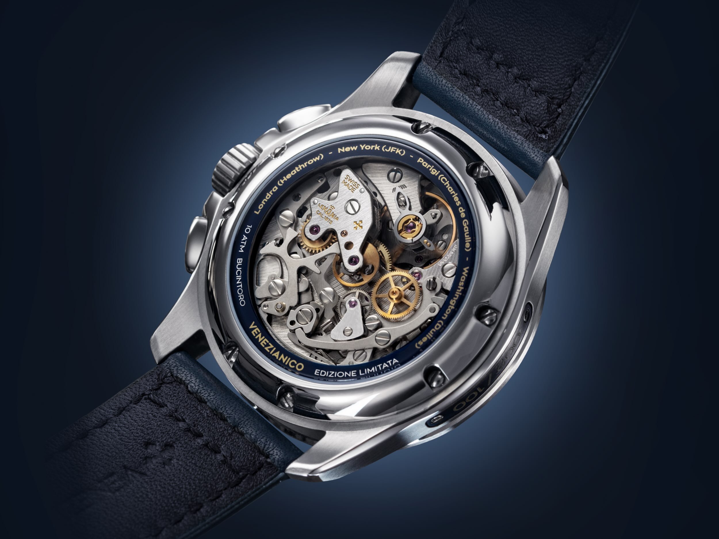 But that’s not where it ends. If you turn the watch around, you will find the beautiful Lemania 1873 movement. Venezianico was able to source 100 NOS calibers, and the brand’s master watchmaker, Daniele Zorzetto, restored all of them.