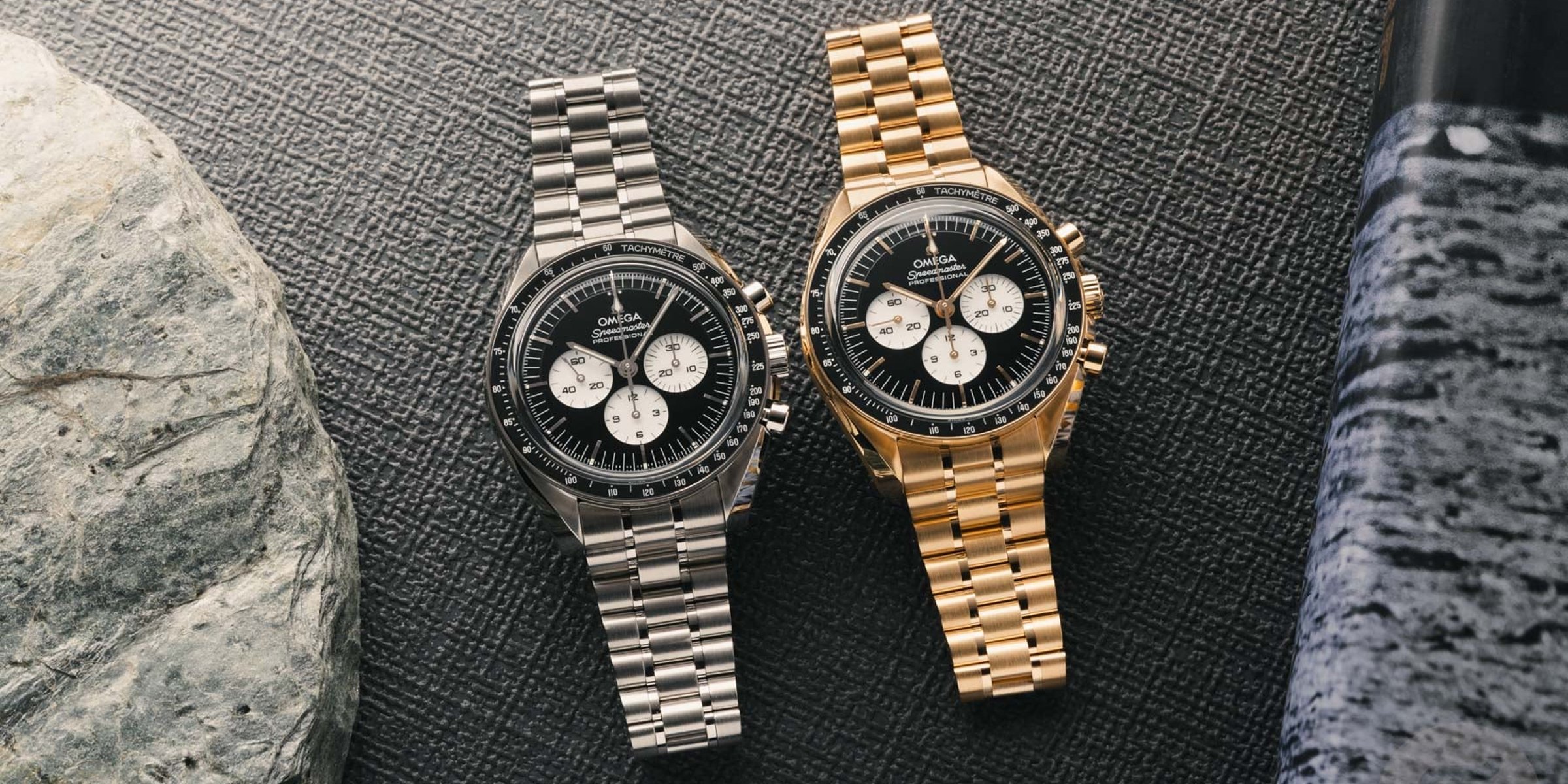 The Omega Speedmaster Moonwatch Professional 310.30.42.50.01.004 (steel) and 310.60.42.50.01.002 (gold)