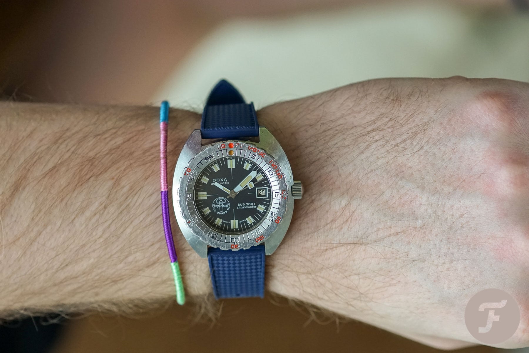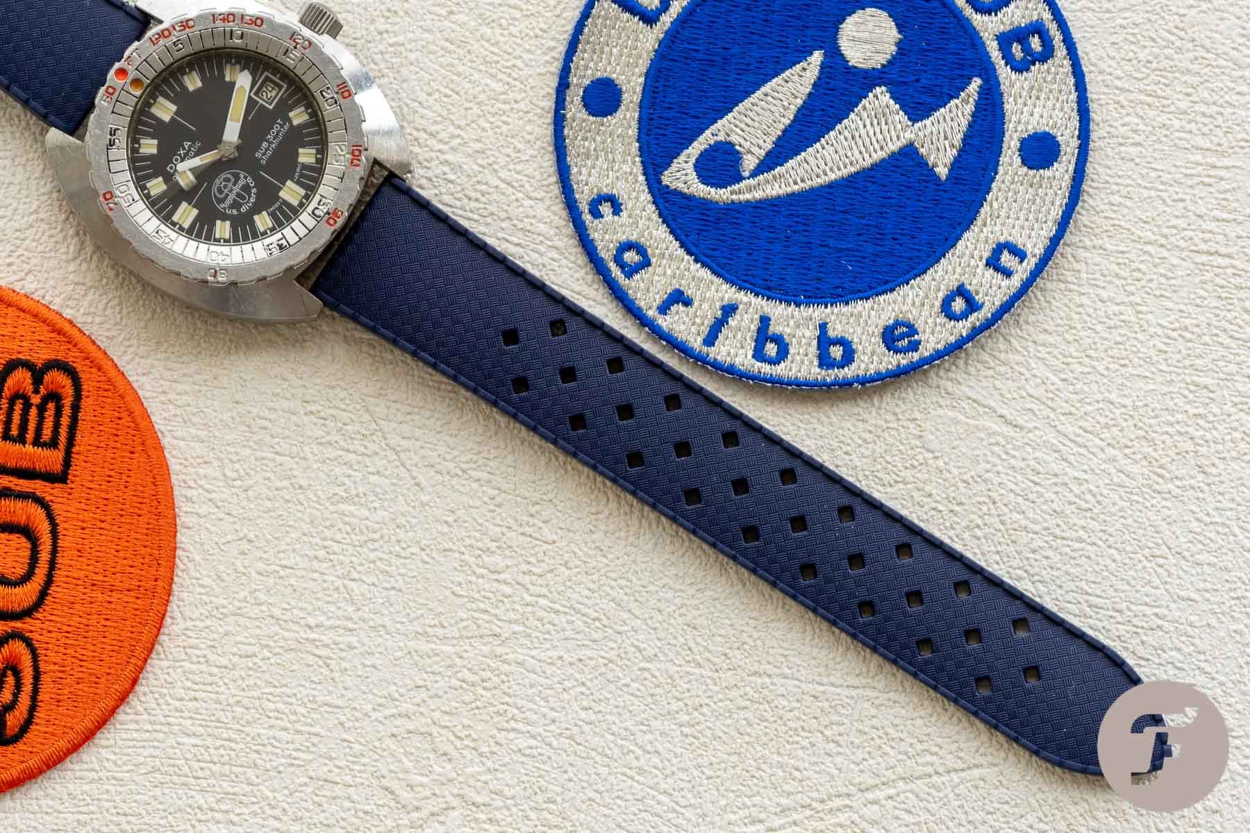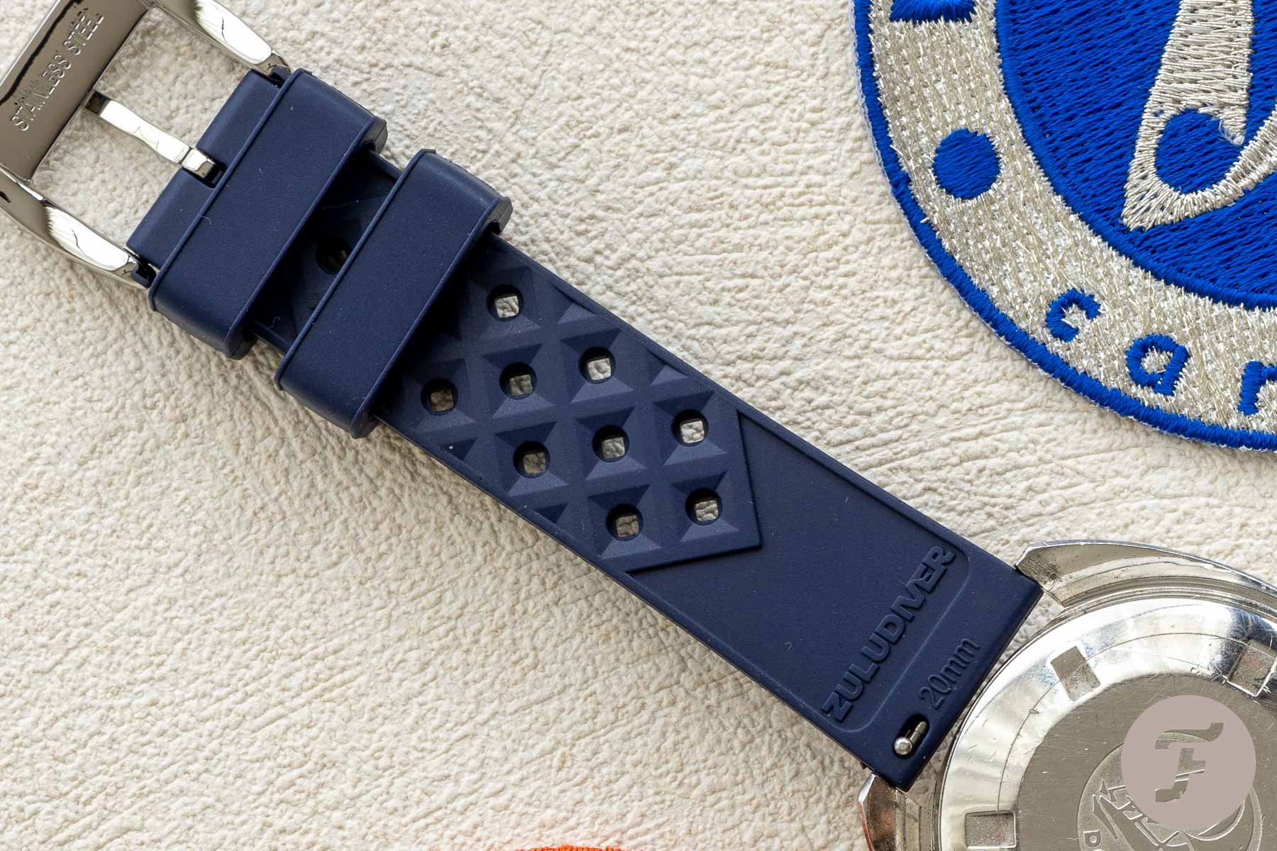 To offer some versatility, though, the strap comes in three colors: black, blue (like mine), and orange. As far as lug size goes, you can get this one in either 20 or 22mm. Since we are talking about a rubber strap that needs to fit a dive watch, the measurements have to be different. The length is 130/80mm. That’s long enough to be worn over a wetsuit but not troublesome when worn on the wrist. Just like the Sailcloth strap, this Zuludiver Rubber strap also comes with built-in quick release spring bars. That’s a handy thing if you want to swap between this strap and, let’s say, the Sailcloth. Aside from the spring bars, the other similar feature between the two products is the price, which is identical at €30.99.